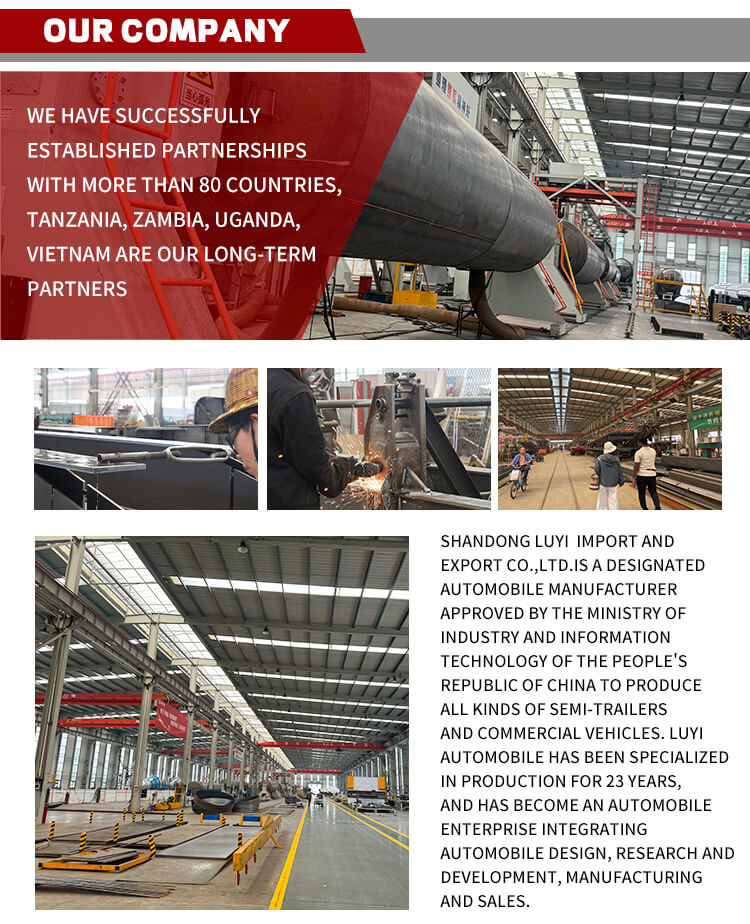 Vores fabrik producerer ikke kun traktorer, men også dumpere, sprinklervogne, lastbilkraner, blandevogne, dumpertrailere, tanktrailere, trailere med lavt leje, trailere til fjernelse af støv osv. Vores fabrik er stor i skala og kan tilpasse forskellige produkter i henhold til forskellige kundekrav.
