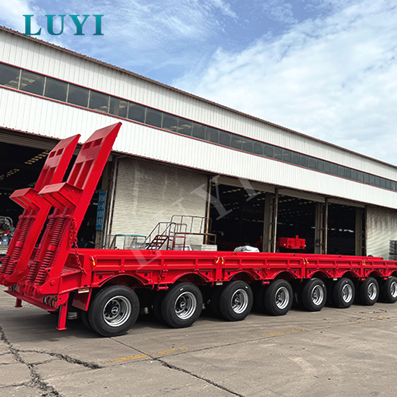 Den 10-akslede 80-100 tons lowbed sættevogn fra LUYI, med oprindelse i Shandong, Kina, er et glimrende valg til tung godstransport. Den er konstrueret af højkvalitetsstål og tilbyder to størrelsesmuligheder: 1780030001500 mm og 1800030001500 mm, med en maksimal belastningskapacitet på 100 tons og en normal nominel belastning på 80 tons, med en ekstraordinær bæreevne.