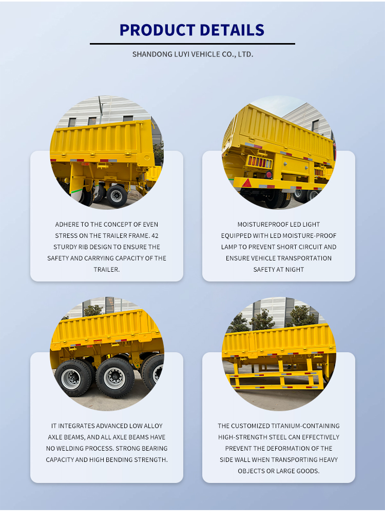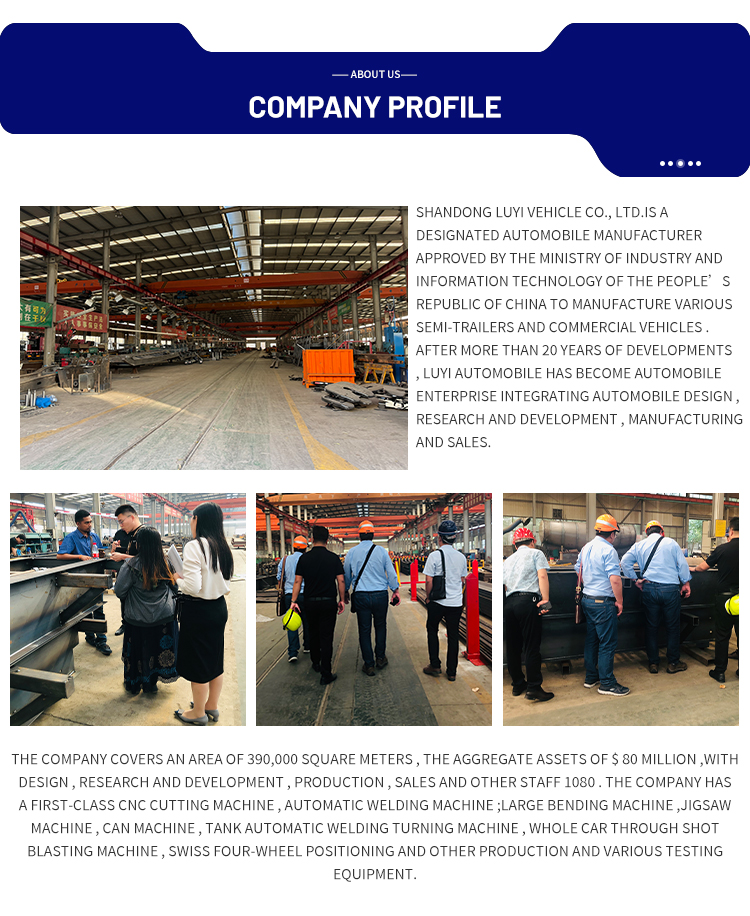 LUYI 13m 3-akslet sættevogn stål-aluminium stak trailer, oprindeligt fra Shandong-provinsen, Kina, er en helt ny sidevægs-sættevogn, der er specielt designet til lastbiltransport. Fremstillet af stål af høj kvalitet, afbalancerer traileren strukturel styrke og holdbarhed med en maksimal effektiv nyttelast på 20.001-25.000 kg, der nemt opfylder behovene for mellem- og tung lasttransport.