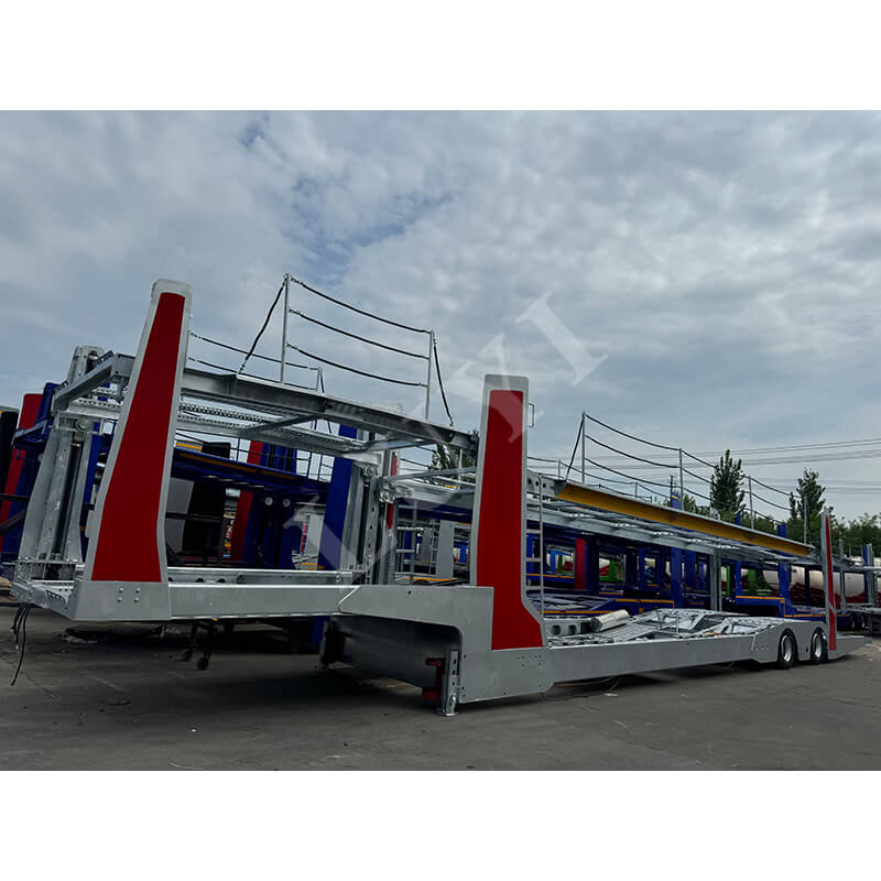 Den 2-aksede 17-meter løfte dobbeltdækker køretøjstransporter er et effektivt udstyr specielt designet til masseoverførsel af biler. Den 17 meter lange krop er udstyret med en dobbeltlagsstruktur, som fleksibelt kan justere højden på det øverste lag i kombination med løftefunktionen. Den er velegnet til at læsse forskellige modeller såsom biler og SUV'er, hvilket i høj grad forbedrer transportvolumen på en enkelt tur. Det 2-aksede layout tager højde for både kørefleksibilitet og bærende stabilitet. Det nye karrosserimateriale har stærk holdbarhed og er udstyret med sikkerhedsanordninger og bremseassistentsystemer, som kan reducere køretøjets stød og skader under transport. Det er velegnet til scenarier som distribution af nye biler i 4S-butikker, billogistikoverførsel og batchoverførsel af brugte biler. Det giver fleksible, effektive, sikre og pålidelige løsninger til køretøjstransport.