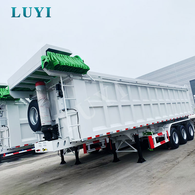 LUYI-mærket hvide 3-akslet bagtiltende dump-anhænger, der stammer fra højkvalitetsproduktion i Shandong, Kina, er en effektiv lastbiltrailer, der er specielt designet til transport af tunge læs. Produktet er lavet af højstyrkestål, med en stabil og holdbar struktur. Den har dimensioner på 1300 mm × 2500 mm × 4000 mm og en maksimal belastningskapacitet på 100 tons, hvilket nemt opfylder transportbehovene for forskellige tunge varer.