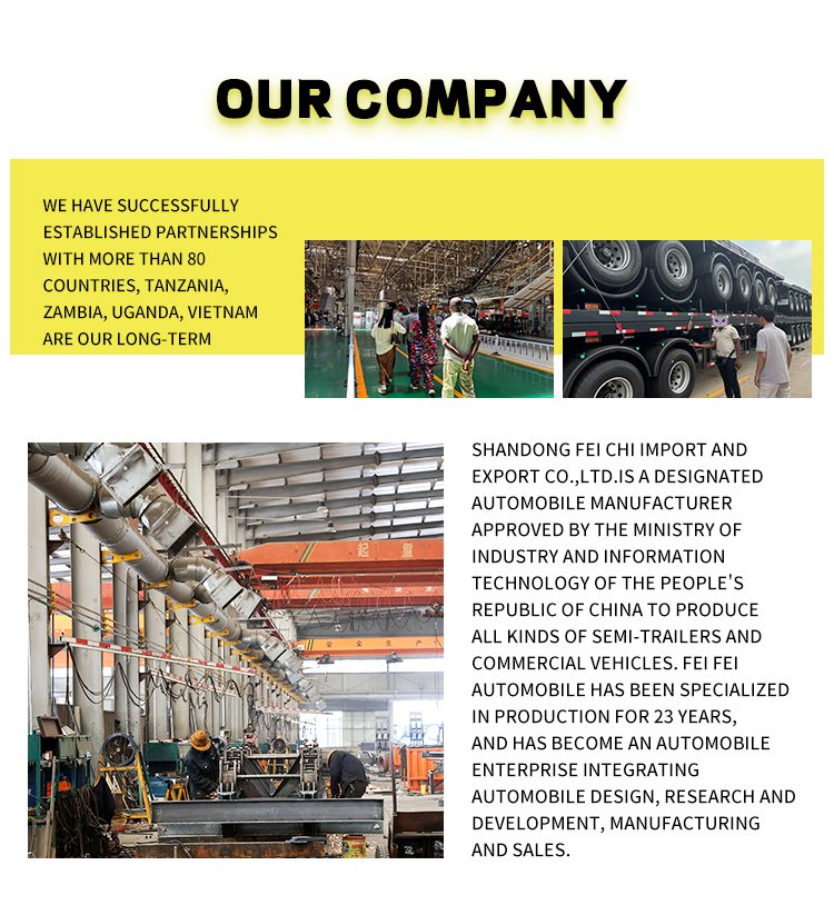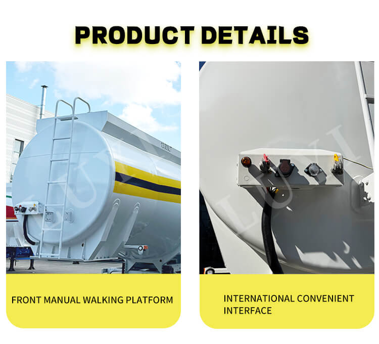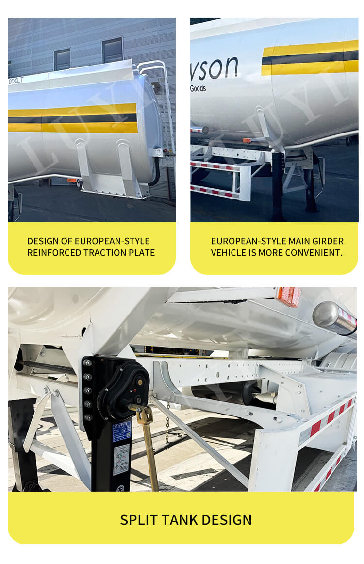 Traileren kan prale af solide og pålidelige konfigurationer. Den er udstyret med 13/16-ton aksler fra mærker som Fuwa, BPW eller BERKLEY, og tilbyder valgfri mekanisk eller luftaffjedring. Den er kompatibel med forskellige dækspecifikationer, herunder 11.00r20, 12r22.5, 315 og 385, hvilket sikrer stabil kørsel og tilpasningsevne til forskellige vejforhold. Den leveres med standard 28-tons landingsstel og 50#/90# kongepinde for bekvem og sikker betjening. Produktet understøtter tilpassede karrosserifarver og kombinerer praktisk og personalisering for at give en stabil og fleksibel professionel løsning til dieseltransport.