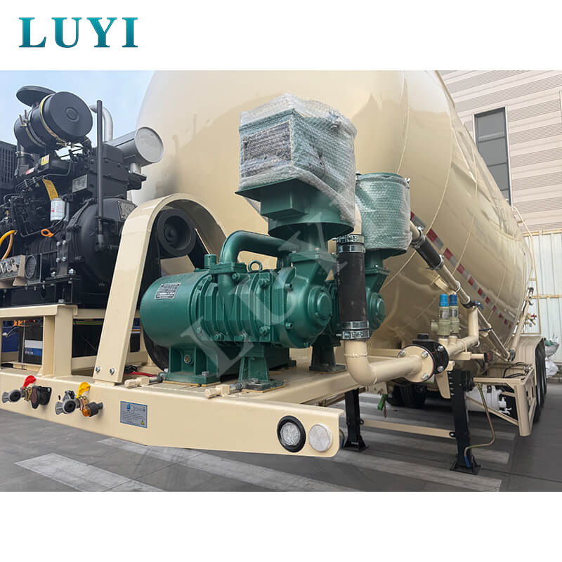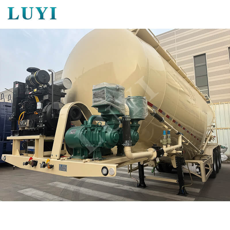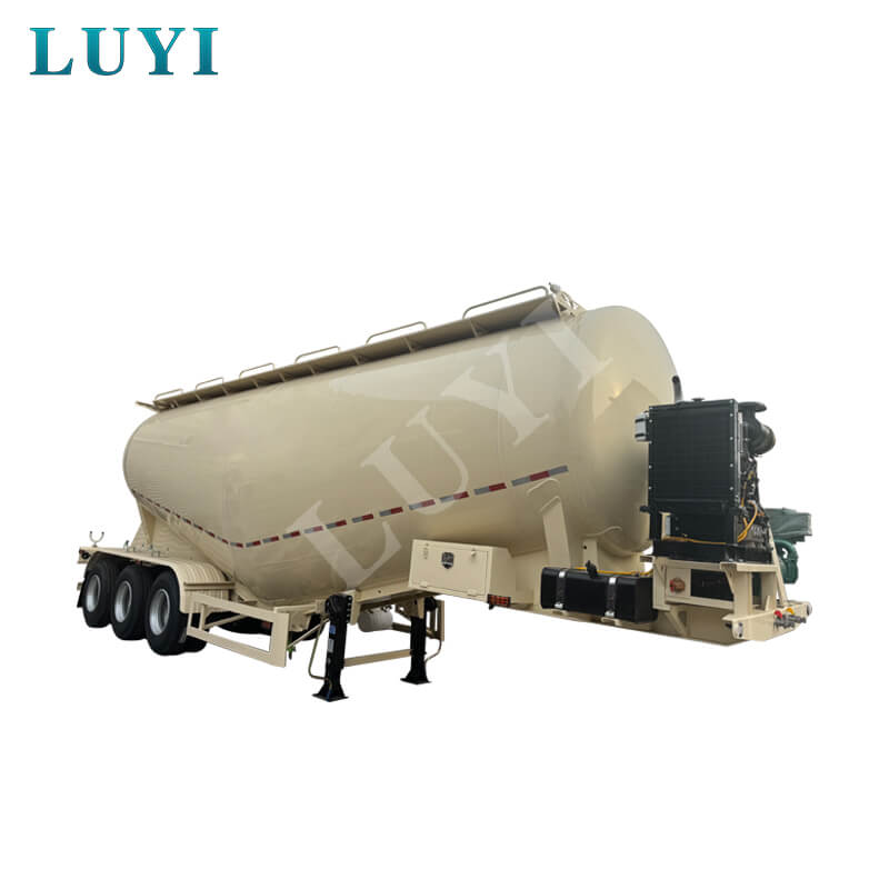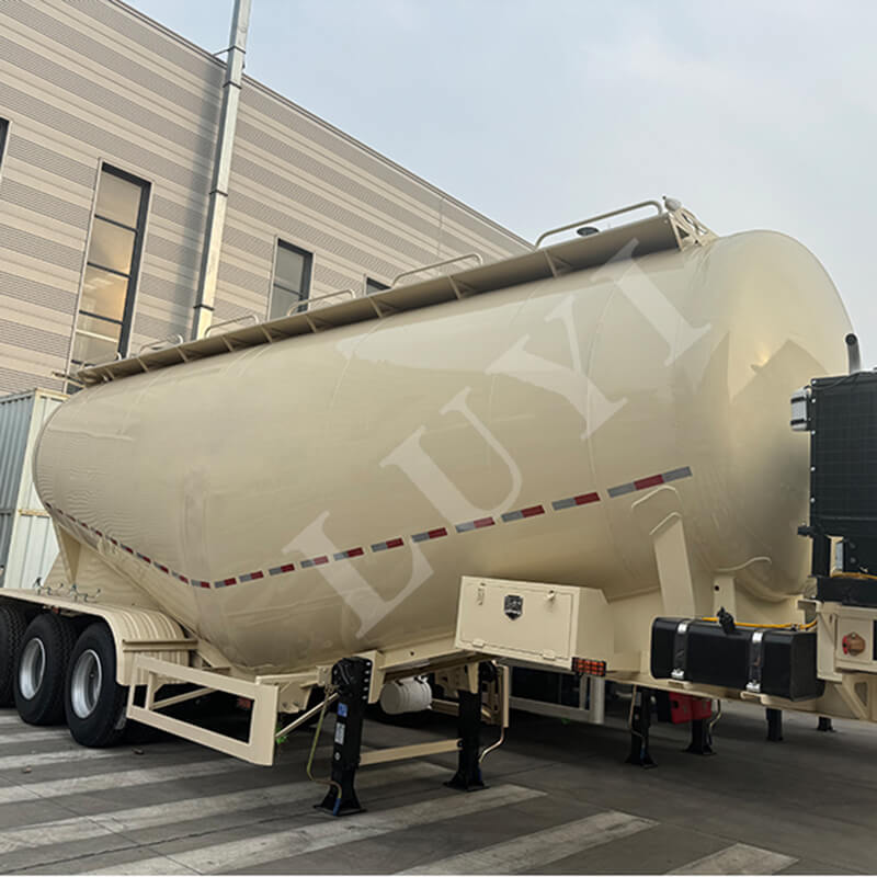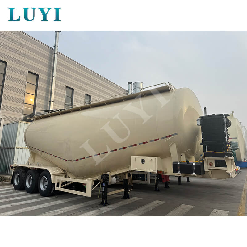 LUYI 3-akslet 35-50 kubikmeter cementtank-sættevogn, der stammer fra Shandong-provinsen, Kina, er en højkvalitets sættevogn, der er specielt designet til effektiv cementtransport. Den har en maksimal effektiv lastekapacitet på 70 tons og et volumen, der spænder fra 35 til 50 kubikmeter, og tilpasser sig fleksibelt til transportbehov i forskellige skalaer.