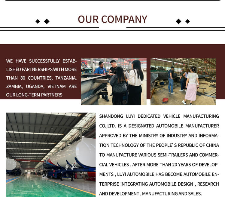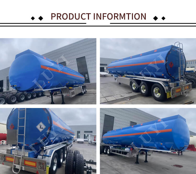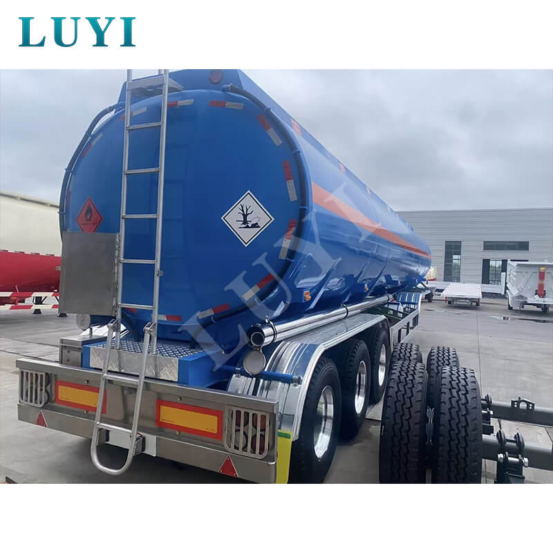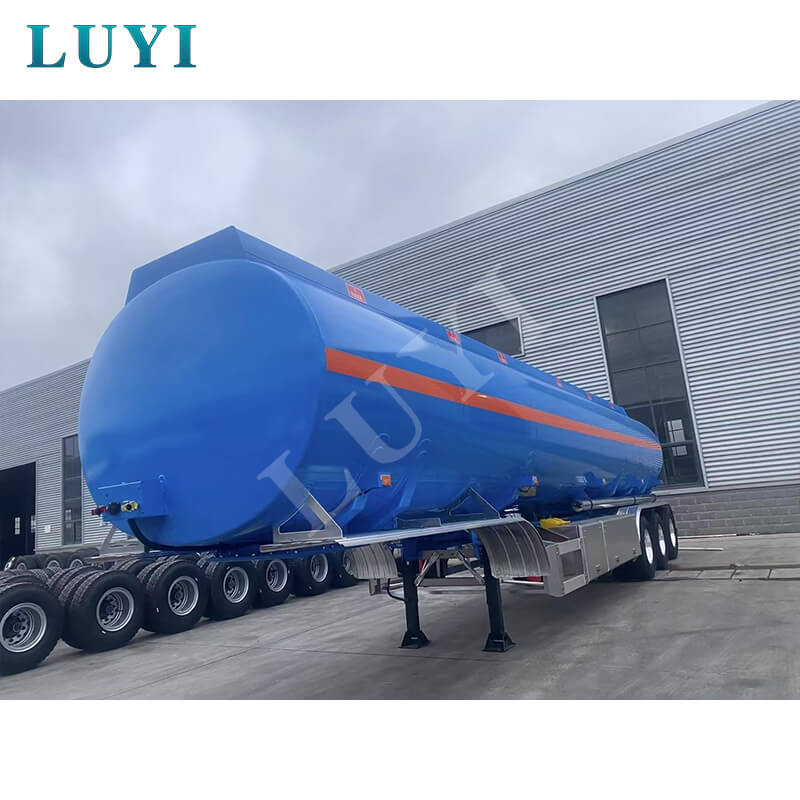 LUYI 3-akslet 40.000-liters aluminium-kulstofstål-tankolietank-semi-trailer, der stammer fra Shandong-provinsen, Kina, er en højkvalitets sættevogn, der er specielt designet til brændstoftransport. Den kan effektivt transportere diesel, benzin, petroleum, råolie og andre medier med en maksimal effektiv belastning på 60 tons for at imødekomme store transportbehov.