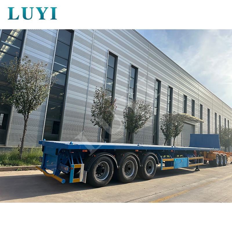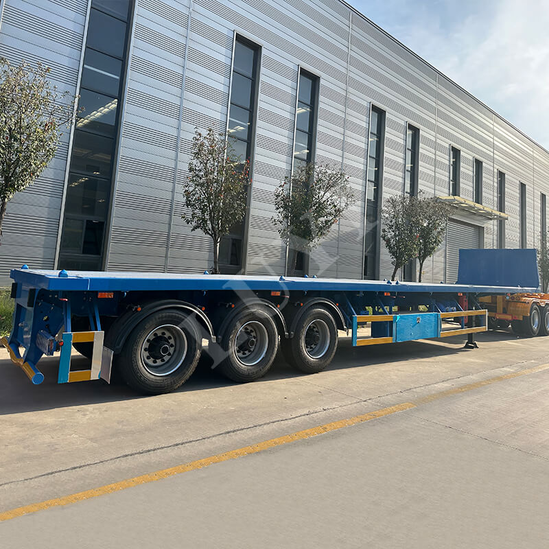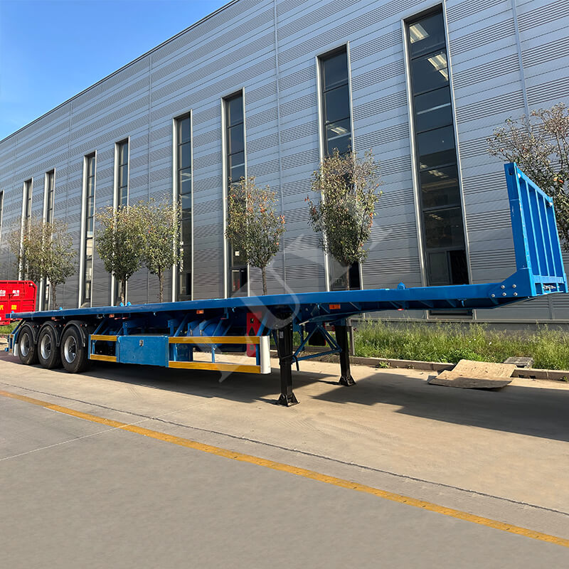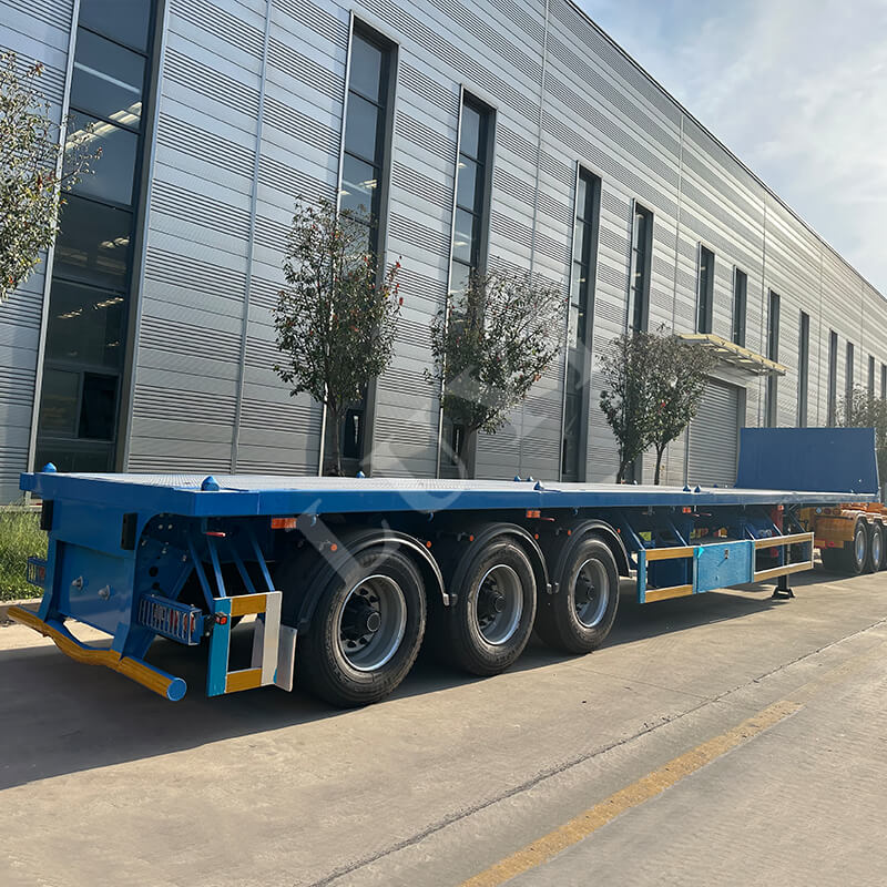 Den 3-akslede 40-tons flatbed-sættevogn er en nyligt kompatibel sættevogn lavet af højstyrkestål, udstyret med 12 dæk og pålidelig affjedring, med en 40-tons lastekapacitet velegnet til tung lasttransport.