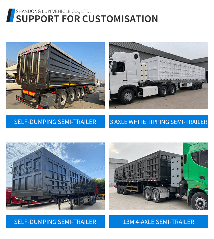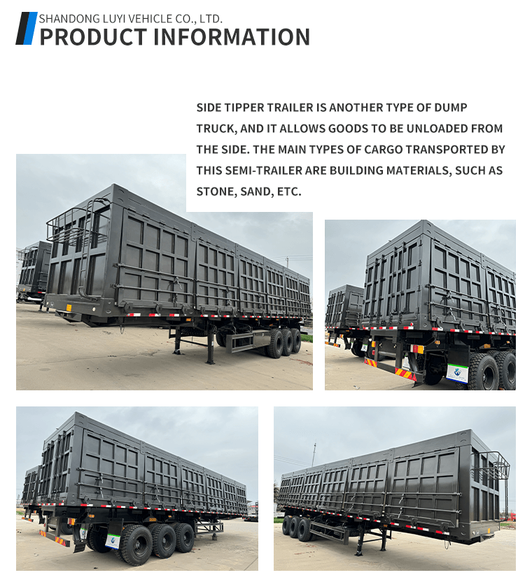 Denne 3-akslede 40-tons sidetip-dumper sættevogn fra LUYI er en højtydende løsning til tung transport. Den stammer fra Shandong i Kina og har en helt ny konstruktion med premium stål, der sikrer holdbarhed til at modstå hårde transportforhold.