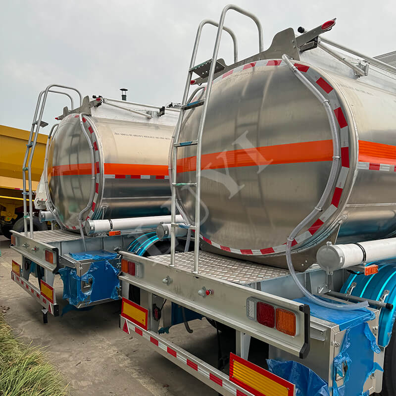 3-akslet 45.000-liters olietanksættevogn af aluminiumslegering, specielt designet til transport af færdige olier såsom diesel og benzin. Den har en letvægts og korrosionsbestandig aluminiumslegeringstank for at reducere sin egen vægt og øge lastekapaciteten, og en stor kapacitet på 45.000 liter for at reducere antallet af transportture. Udstyret med et stabilt 3-akslet layout, valgfri affjedring, anti-lækage struktur og ABS, giver den en effektiv og sikker transportløsning til olieraffinaderiets udadgående transport og tankstationsdistribution.