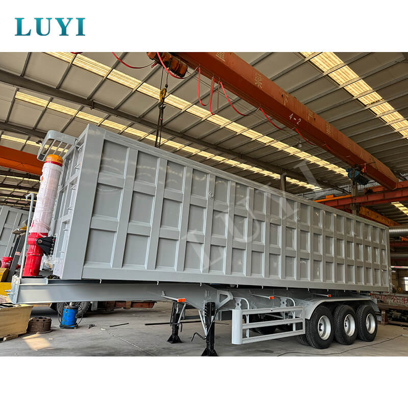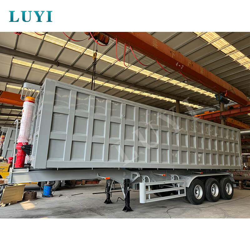 Denne 3-akslede 50-60 tons hydrauliske løftecylinder bag-dump sættevogn fra LUYI er en kraftig løsning til sand- og grustransport. Den stammer fra Shandong, Kina, og er konstrueret af højkvalitetsstål, der kan prale af en maksimal nyttelast på 80T til at håndtere tunge belastninger ubesværet.
