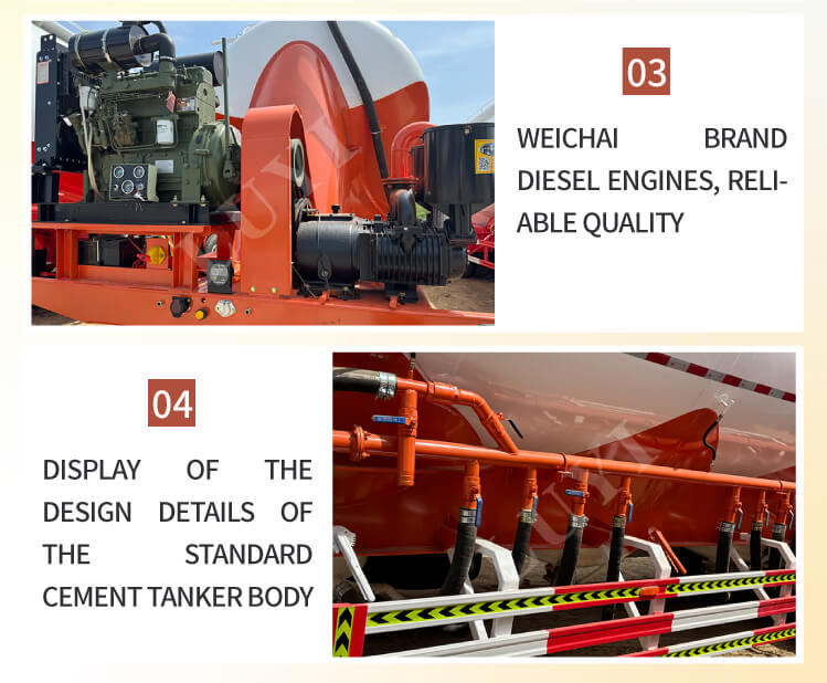 Fremstillet af højkvalitetsstål, anvender traileren 16# kanalsstål til sidebjælkerne, hvilket sikrer en robust og holdbar struktur. Dens maksimale effektive nyttelast overstiger 30.000 kg, og lastekapaciteten varierer fra 30 tons til 60 tons, hvilket nemt opfylder behovene for forskellige transportvolumener. Udstyret med en 3-akslet struktur, 12R22.5 dæk og 9.00-22.5 fælge, parret med en mekanisk luftaffjedring, sikrer den stabil kørsel og tilpasser sig forskellige vejforhold. Standard landingsstellet på 28 tons garanterer solid støtte under parkering. Hvad mere er, kommer den med en 6-årig garantiperiode, hvilket i vid udstrækning reducerer brugsproblemer og giver pålidelig og langsigtet udstyrsstøtte til bulkcementpulvertransport