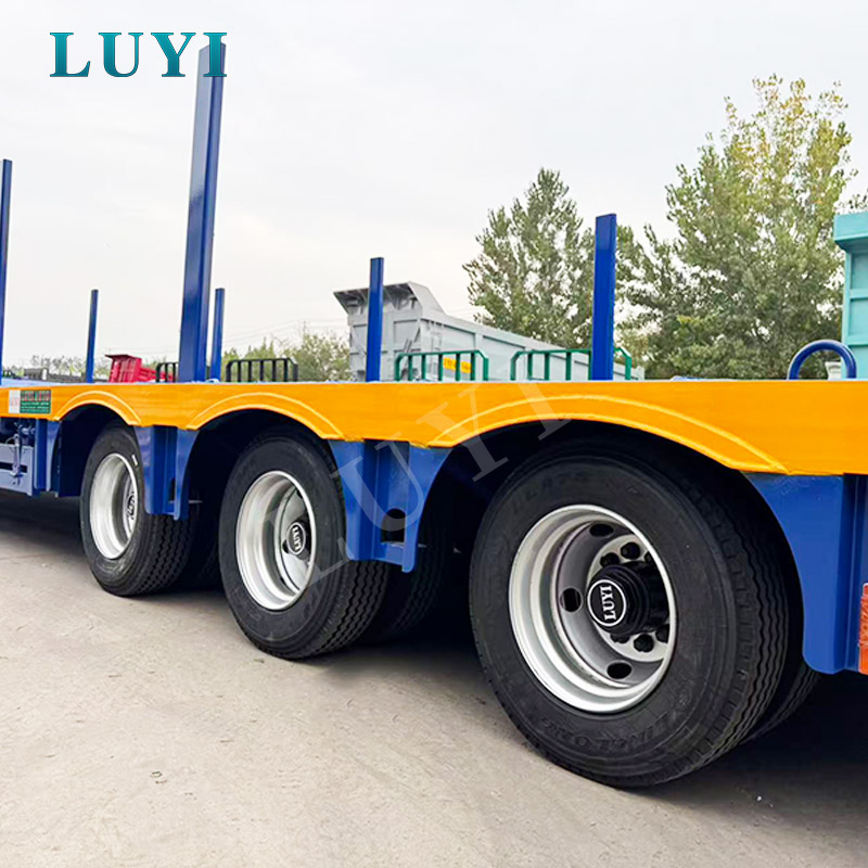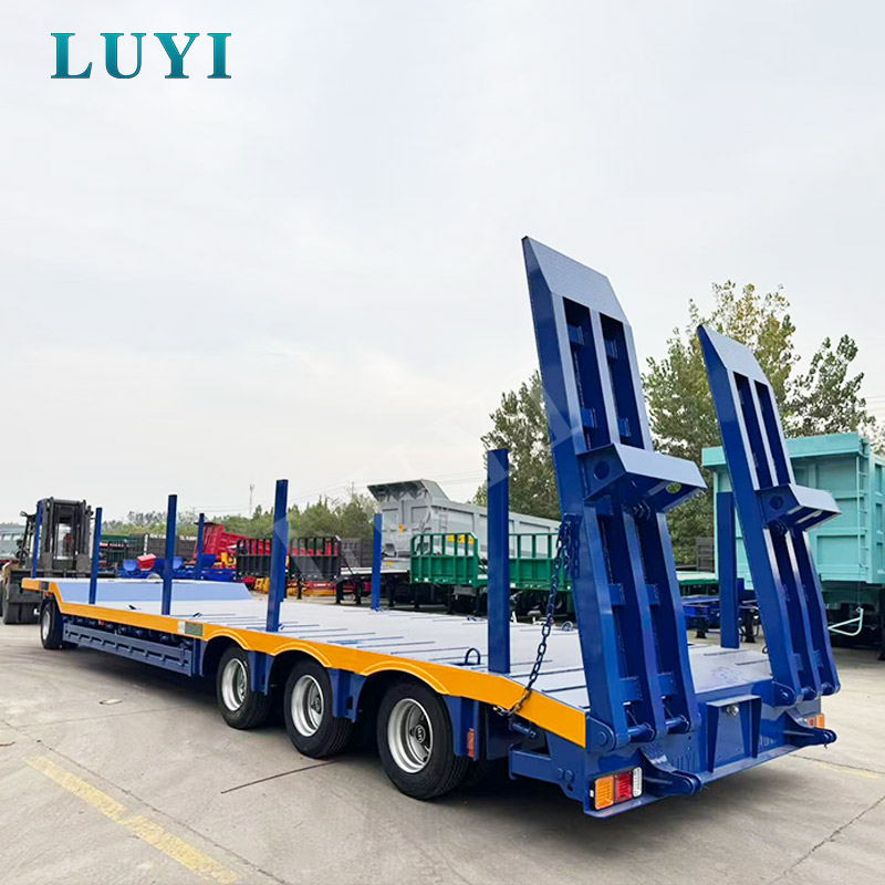 LUYI 3 Axle Lowbed Truck Semi Trailer er et højtydende transportkøretøj, der stammer fra Shandong, Kina, designet til tung lasttransport som gravemaskiner.