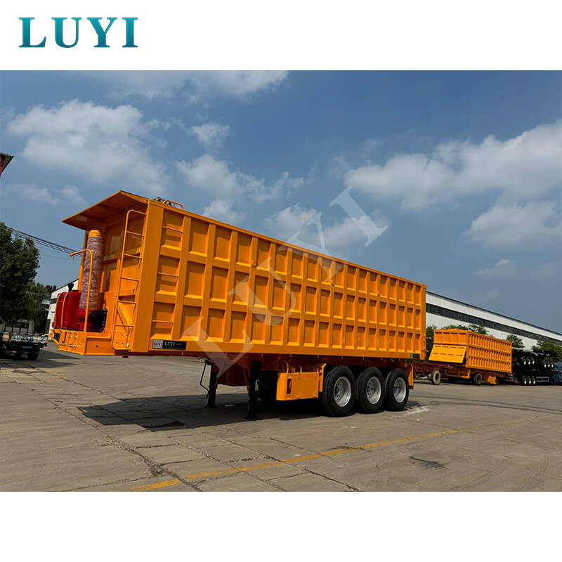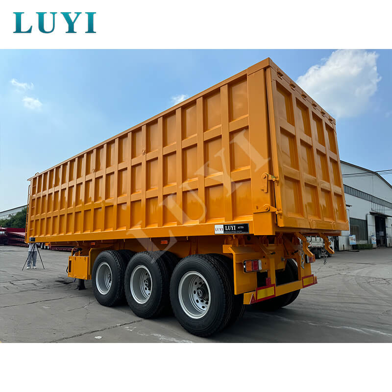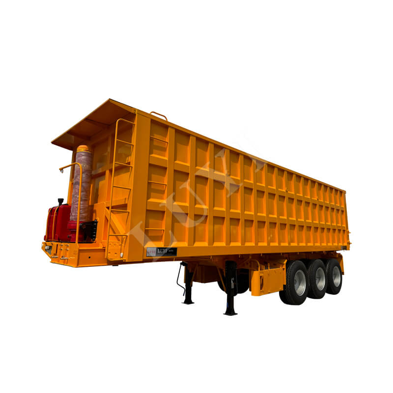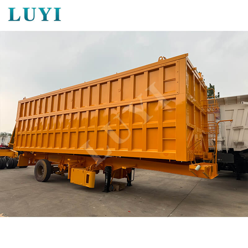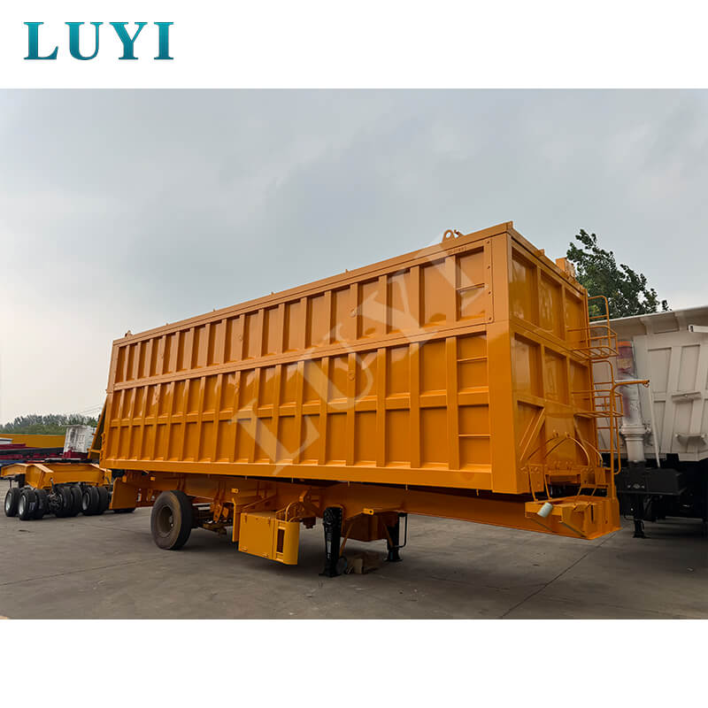 Denne 3-akslede 60-tons bagtip-dumper-sættevogn er en kraftig ny sættevogn med en lastekapacitet på 80 tons, velegnet til højintensive driftsscenarier. Kroppen er lavet af stål, og bundpladen er en 3-5 mm ternet plade, som er skridsikker og slidstærk. Den er udstyret med 13/16-tons Fuwa/BPW/CIMC-aksler og 12 dæk. Fælgene kan vælges i 8.00-20/8.5-20/8.8-20 specifikationer, med en sporvidde på 1820 mm og en akselafstand, der fleksibelt kan justeres mellem 7000-8000 mm, hvilket sikrer stærk stabilitet.