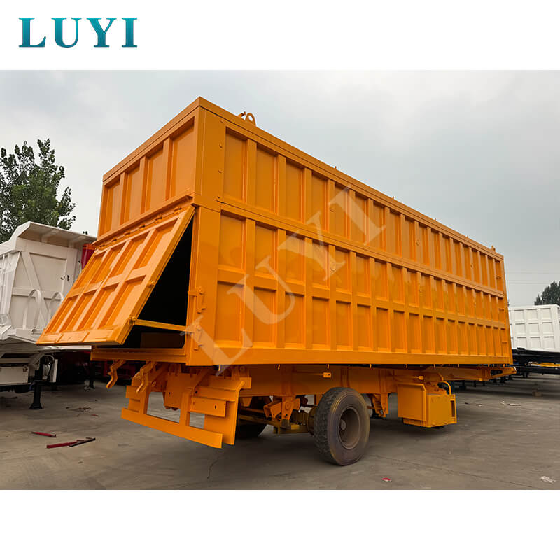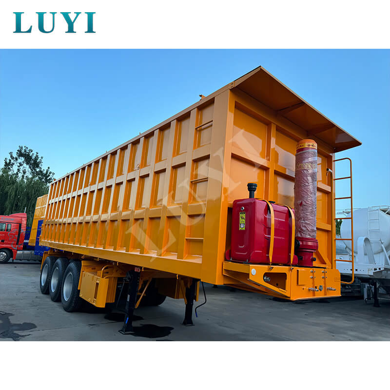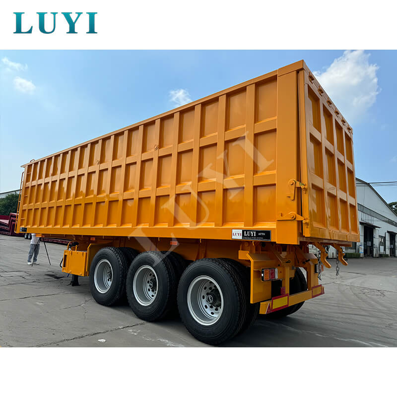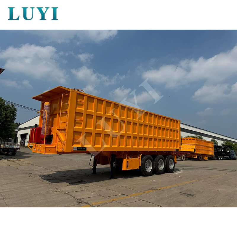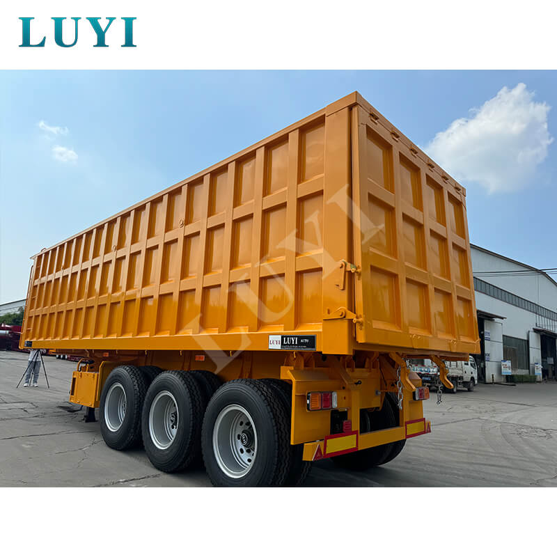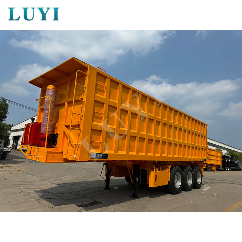 Denne 3-akslede 60-tons bagtip-dumper-sættevogn er en kraftig ny sættevogn med en lastekapacitet på 80 tons, velegnet til højintensive driftsscenarier. Kroppen er lavet af stål, og bundpladen er en 3-5 mm ternet plade, som er skridsikker og slidstærk. Den er udstyret med 13/16-tons Fuwa/BPW/CIMC-aksler og 12 dæk. Fælgene kan vælges i 8.00-20/8.5-20/8.8-20 specifikationer, med en sporvidde på 1820 mm og en akselafstand, der fleksibelt kan justeres mellem 7000-8000 mm, hvilket sikrer stærk stabilitet.