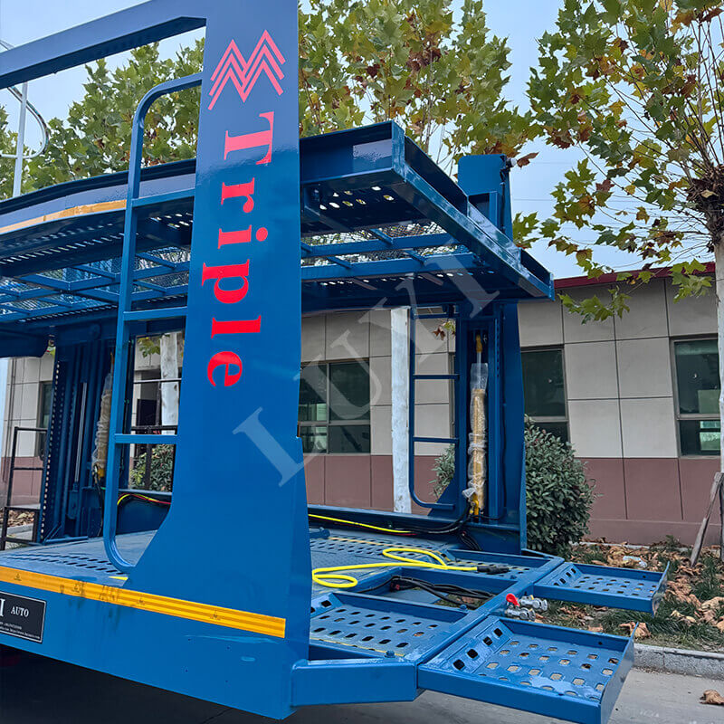 Luyi 3-akslet sættevogn til biltransport, 17 meter containertrailer, som et nyt tungt transportudstyr fremstillet i Kina, er specielt designet til overførsel af biler og containere. Med en lastekapacitet på 25 tons opfylder den almindelige fragtbehov og kombinerer praktisk med pålidelighed.