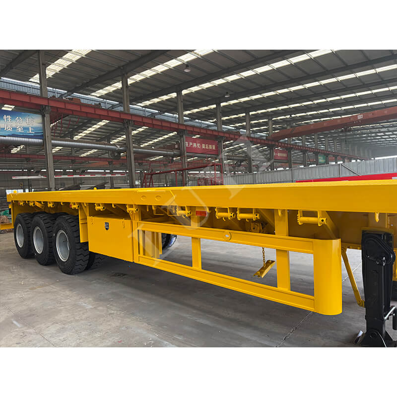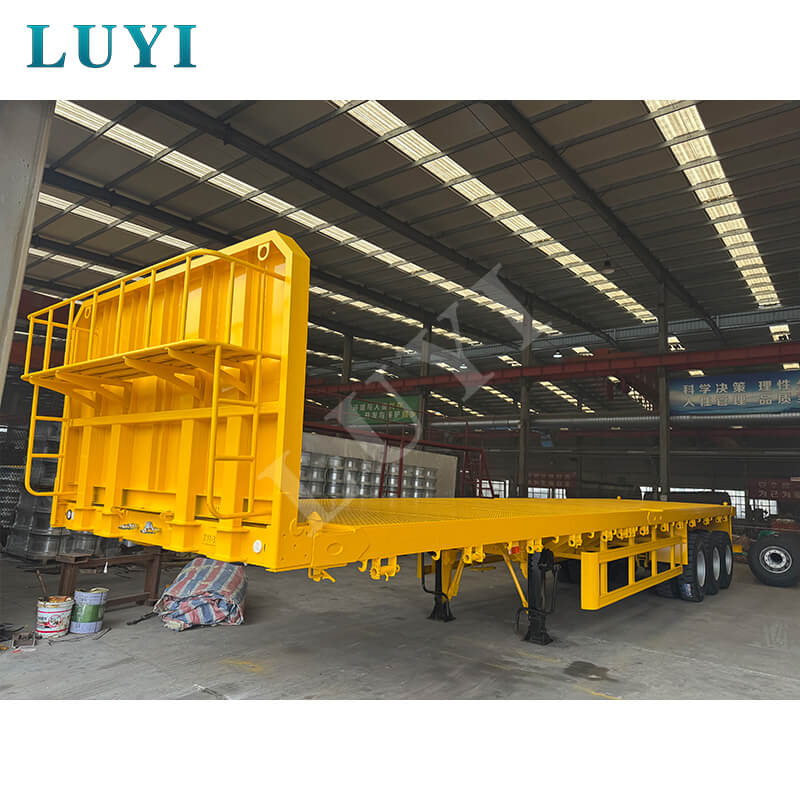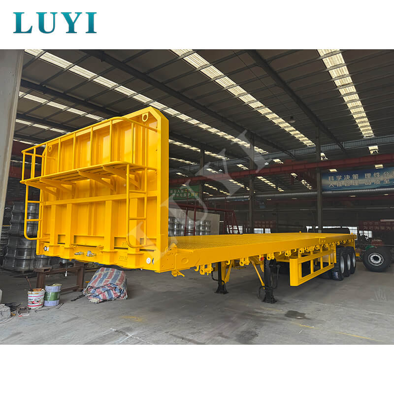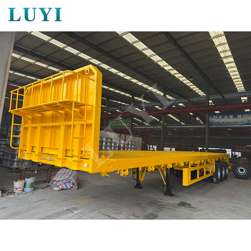 Luyi 3-akslet flatbed sættevogn med en lastekapacitet på 40 tons, fra Shandong-provinsen, Kina, er et pålideligt valg til tung transport. Som en splinterny semitrailer med lad overstiger dens maksimale effektive belastning 30.000 kg, hvilket langt overgår konventionelle belastningskrav og kan nemt håndtere forskellige transportopgaver med tung last.