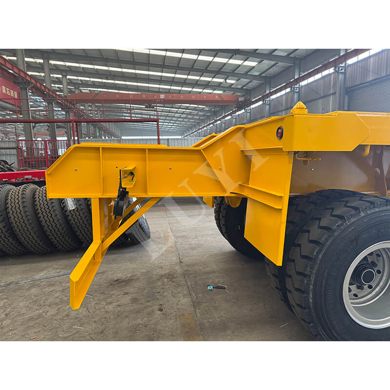 Hele kroppen er lavet af højkvalitetsstål, med en robust og holdbar struktur med stærk slidstyrke og deformationsmodstand, der er i stand til at tilpasse sig komplekse transportmiljøer i lang tid. Køretøjet er udstyret med 3 aksler på 13-tons mærkeaksler, parret med 12R22.5-specifikke dæk og mekanisk affjedring, hvilket sikrer fremragende kørestabilitet og jævn kørsel selv på forskellige vejforhold. Standardstøttebenene på 28 tons giver stabil støtte til lastning og losning, og kingpin tilbyder to muligheder: 2 tommer (50 mm) og 3,5 tommer (90 mm), som er kompatible med de fleste traktorer. Derudover kan farven tilpasses efter kundernes behov, fuldt ud opfylde personlige brugspræferencer og lette effektiv transport.