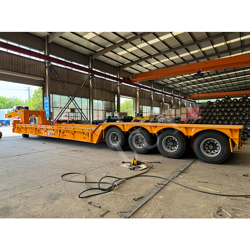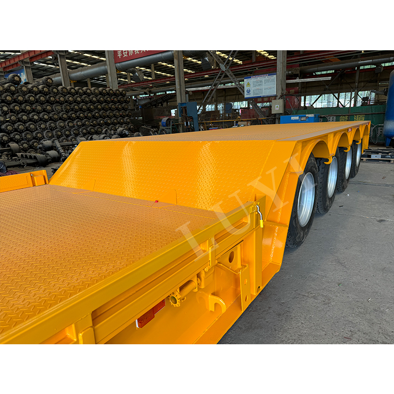 Traileren tilbyder valgfri mekanisk eller luftaffjedring, parret med 90 (bredde) ×13 (tykkelse) ×10 (lag) bladfjedre og valgfri 12R22.5/12.00R20/11R22.5 dæk, hvilket sikrer stabile og pålideligedygtig transport. Den er også udstyret med JOST standard 28 tons støtteben for stærk stabilitet. Luyi-mærket bygger produktkvalitet med solide materialer og udsøgt håndværk, hvilket giver en sikker og effektiv løsning til langdistancetransport af tungt udstyr.