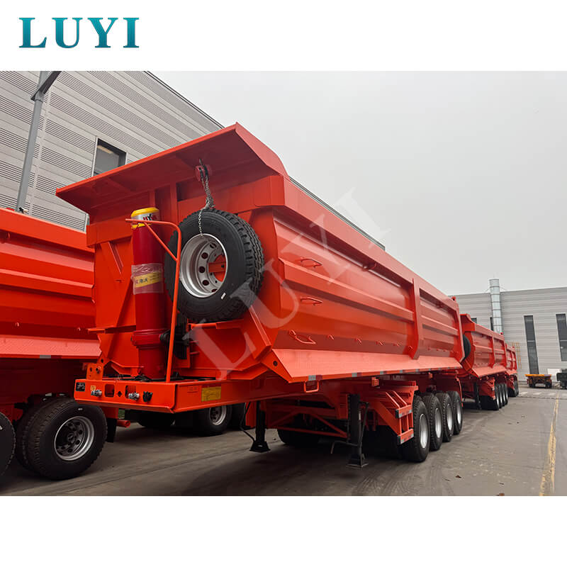 Luyi 4-akslet 100-tons U-Type Rear-Tipping Dump Semi-Trailer, der stammer fra Shandong-provinsen, Kina, er en splinterny semitrailer til bagudlæsning, specielt designet til sand- og grustransport. Trailerkassen er lavet af højkvalitetsstål, med dimensioner på 9,6×2,5×2 meter og et volumen på 35-60 kubikmeter, hvilket muliggør effektiv læsning af bulkgods som sand og grus.