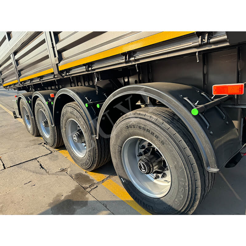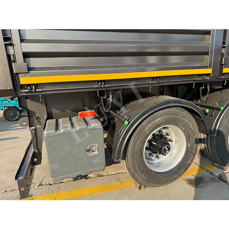 Anhængeren er fremstillet af kulstofstål af høj kvalitet og kan prale af en holdbar struktur med dimensioner på 9500x2500x3600MM. Den har en 4-akslet opsætning, parret med en mekanisk affjedring og 90(W)mm×13(Thickness)mm×10(Layer) bladfjedre, hvilket sikrer stabil belastning selv under hårde forhold. Den maksimale nyttelast når 80 tons, mens dækmuligheder (12R22.5/12.00R20/11R22.5) og JOST Standard 28 tons landingsstel øger tilpasningsevnen og sikkerheden. Farven kan tilpasses efter kundernes præferencer, hvilket gør det til et pålideligt, alsidigt valg til bulkmaterialetransport.