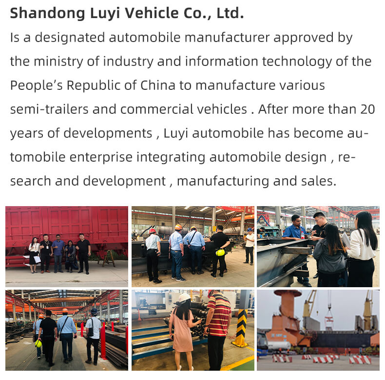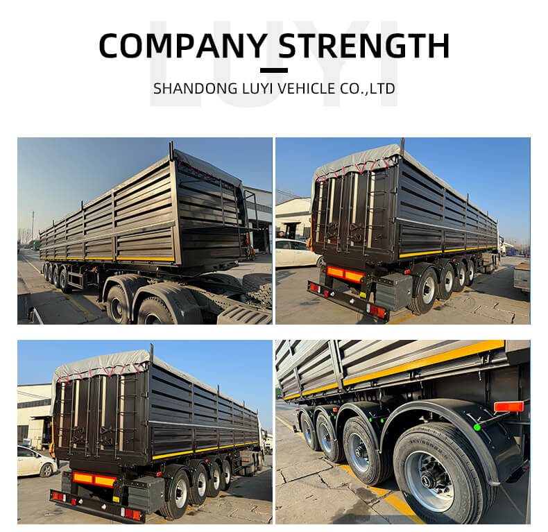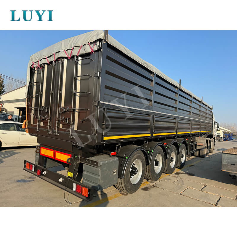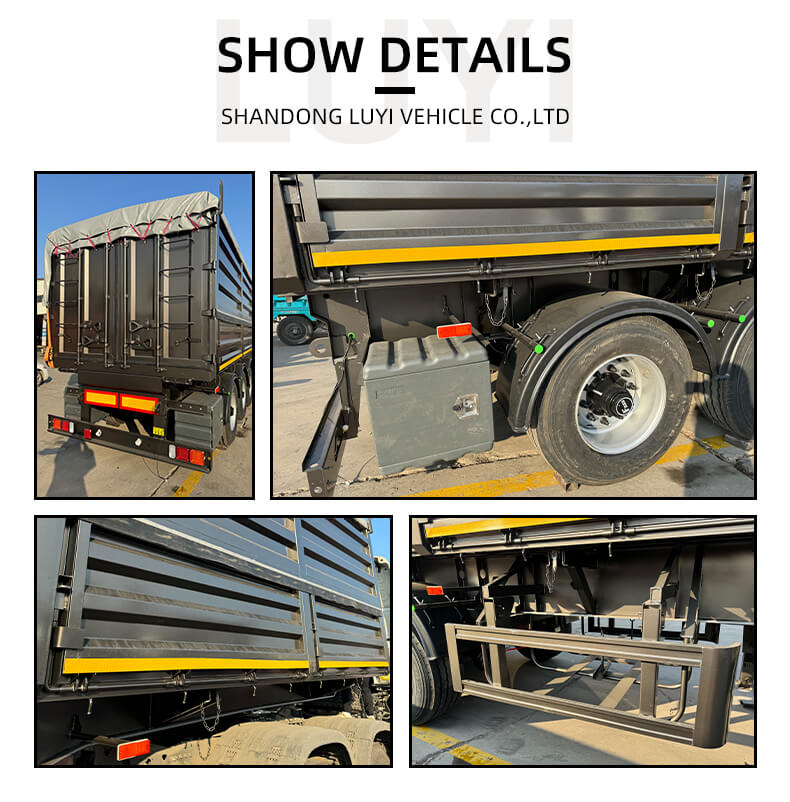 Denne 4-akslede 40-fods dumper sættevogn fra mærket LUYI er et højtydende transportkøretøj, der er skræddersyet til sand-, sten- og kultransport. Den kommer fra Shandong i Kina og kombinerer robust konstruktion med praktisk funktionalitet for at imødekomme behov for tung transport.