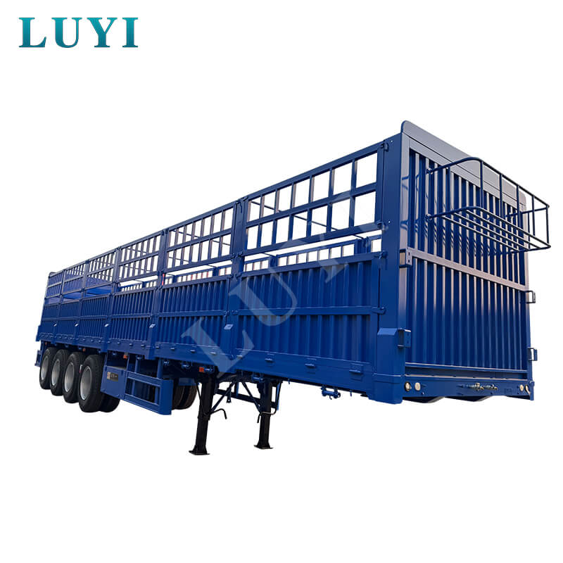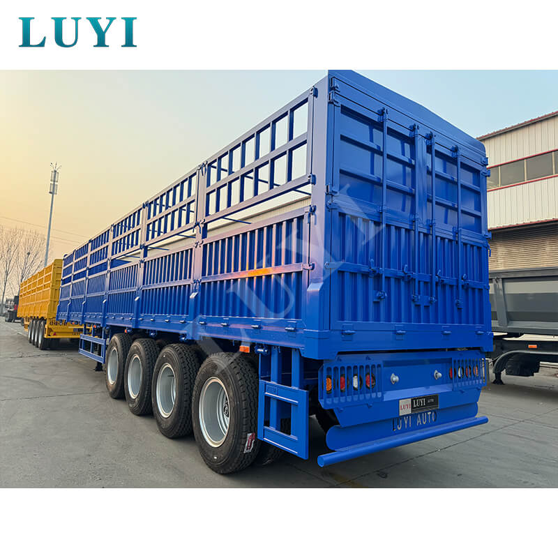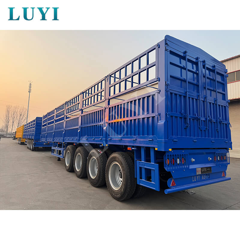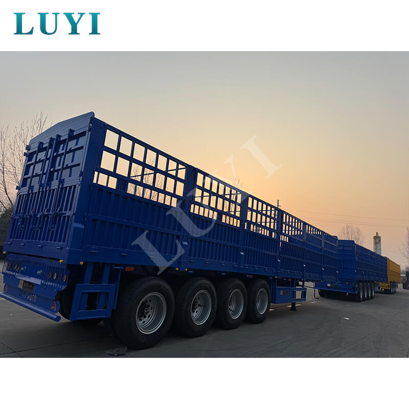 Luyi 4-akslet 60-tons stav-sættevogn, der stammer fra Shandong-provinsen, Kina, er en helt ny professionel fragtsættevogn designet til lastbiler. Dens kernefunktion er at transportere bulklast og containere, der opfylder forskellige fragtbehov.