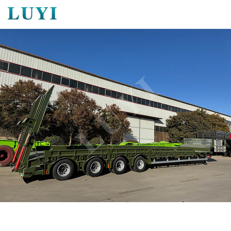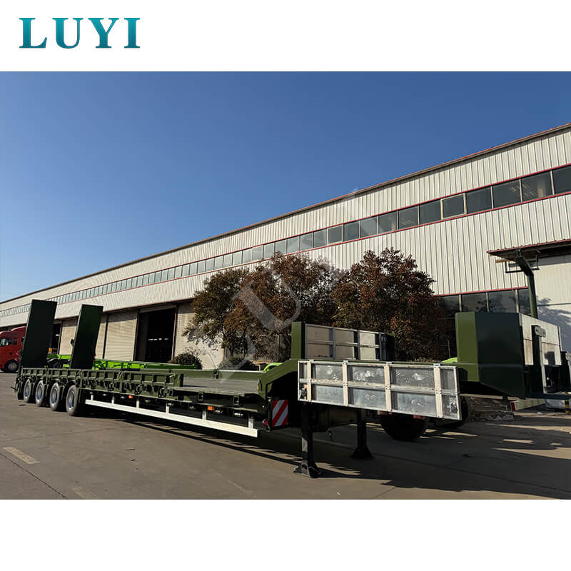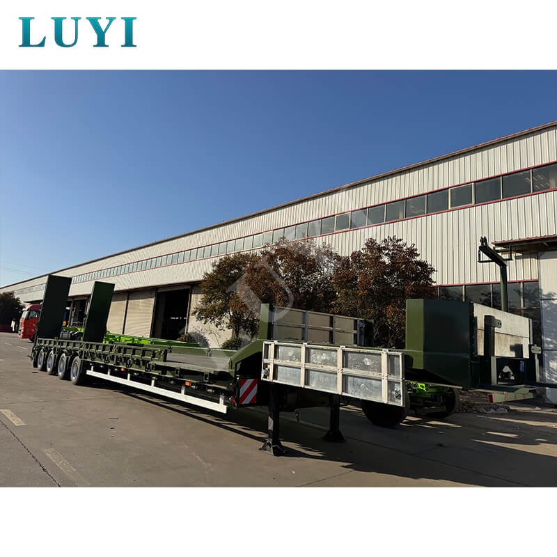 LUYI 4-akslet 60-tons svanehals-sænkevogn med lav seng, et helt nyt produkt fra Shandong, Kina, er en professionel lastbiltrailer designet til tung lasttransport. Det anvender højkvalitetsstål som hovedmateriale med en standardstørrelse på 13m×3m×2,5m og en maksimal nyttelast på 60 tons for at imødekomme tunge transportbehov.