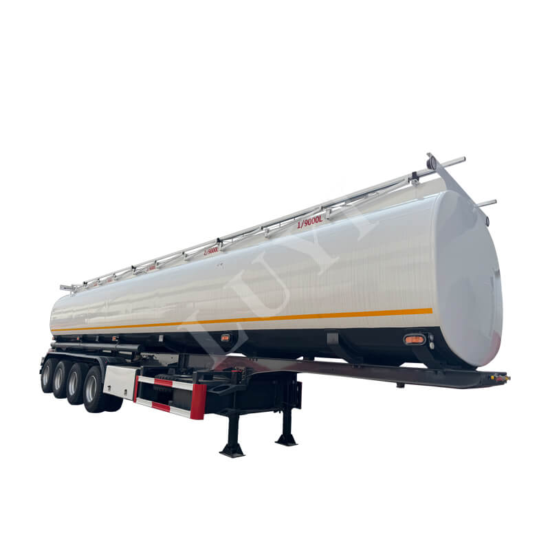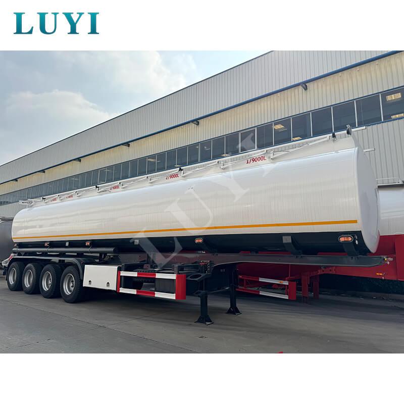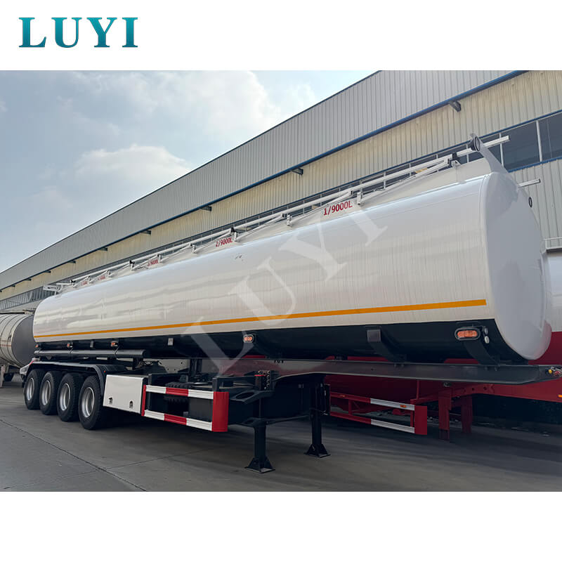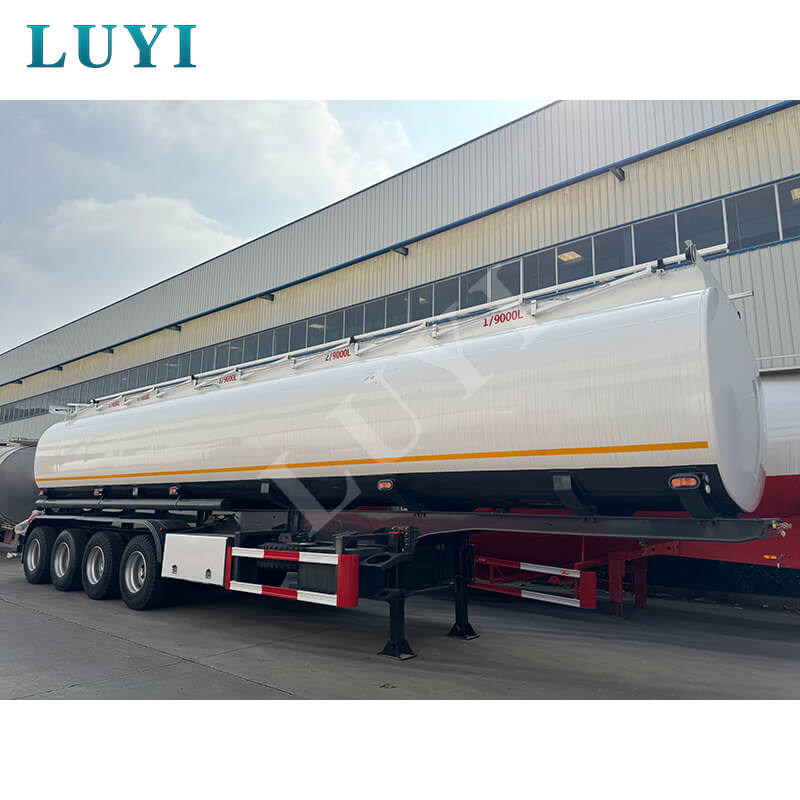 LUYI 4-akslet Carbon Steel 5-rums 45.000L Tankvogn Sættevogn, der stammer fra Shandong-provinsen, Kina, er en højeffektiv lastbil-sættevogn specielt designet til brændstoftransport. Den er konstrueret med kulstofstål og har en robust struktur. Udstyret med mærkets eksklusive 4-akslede konfiguration kan den prale af fremragende lastbærende ydeevne med en maksimal effektiv nyttelast på over 30.000 kg og en lastkapacitet på mellem 20 og 60 kubikmeter. Volumenet på 45.000L kan fleksibelt opfylde forskellige transportbehov.