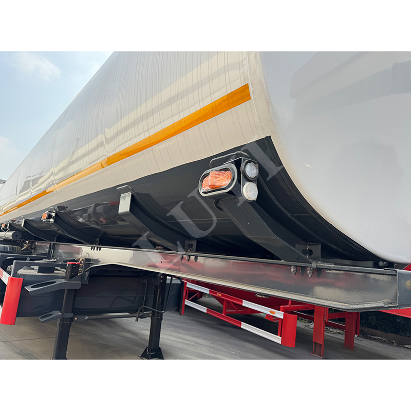Affjedringssystemet tilbyder dobbelte muligheder for mekanisk affjedring og luftaffjedring, parret med 12R22.5 dæk for stærk kørestabilitet. Den er udstyret med standard 28-ton støtteben og 2-tommer (50 mm) eller 3,5-tommer (90 mm) kingpins, kompatibel med forskellige traktorer for nem betjening. Farverne kan tilpasses efter kundens krav, balancerer praktisk og personalisering, hvilket gør det til et pålideligt valg inden for brændstoftransport over lange afstande.