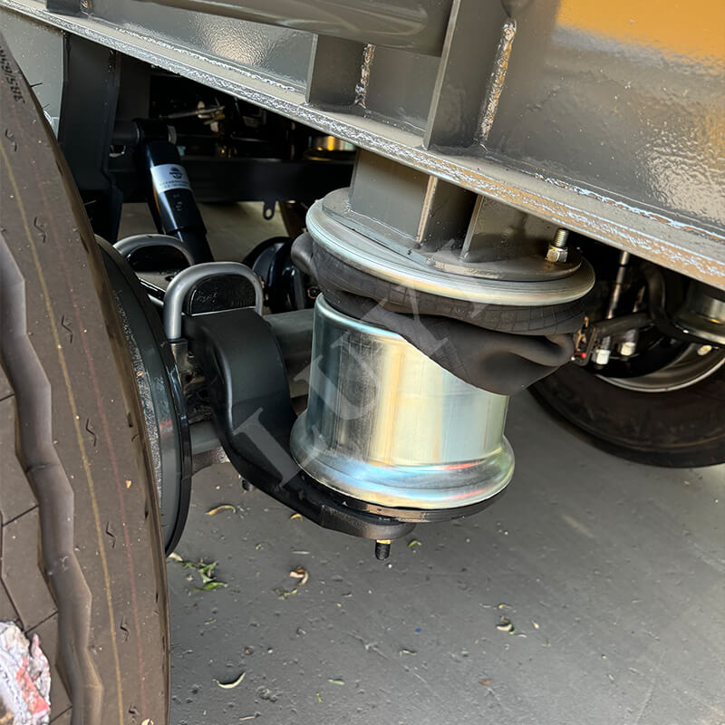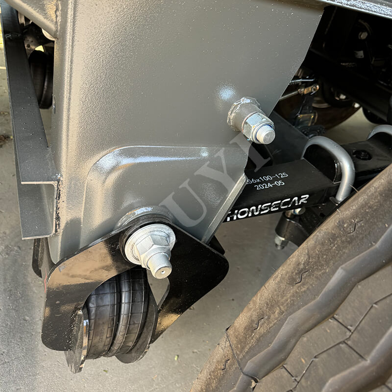 Køretøjet er udstyret med 12R22.5 slangeløse dæk, som har bestået flere internationale certificeringer, herunder ECE, GCC, ISO og DOT. Disse dæk er slidstærke, holdbare og reducerer risikoen for dækudblæsninger. Den tilbyder fleksible konfigurationer af 2/3/4 aksler, parret med 2-tommer (50 mm) eller 3,5-tommer (90 mm) JOST kingpins, der tilpasser sig til forskellige traktorer og opfylder forskellige transportscenarier. Det mekaniske affjedringssystem sikrer stabil kørsel, og design med fuld-airbag rollover forbedrer aflæsningseffektiviteten betydeligt og reducerer arbejdsomkostningerne.