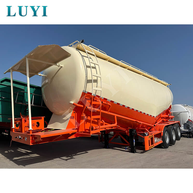Den 3-akslede 40 kubik-meter V-type bulkcementtanksættevogn fra LUYI, Shandong-provinsen, Kina, er lavet af højkvalitetsstål og er i en helt ny stand. Den er specielt designet til transport af bulkcementpulver med en maksimal effektiv belastning på over 30.000 kg og kan prale af en stærk bæreevne.