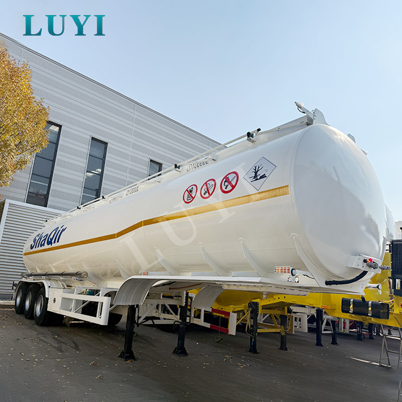 LUYI mærket 45000L brændstoftank sættevogn, der stammer fra en højkvalitets produktionsbase i Shandong, Kina, er et effektivt transportudstyr specielt bygget til brændstoftransportscenarier. Produktet er lavet af højkvalitetsstål, med fremragende strukturel styrke og holdbarhed, der nemt kan håndtere komplekse vejforhold under langdistancetransport.
