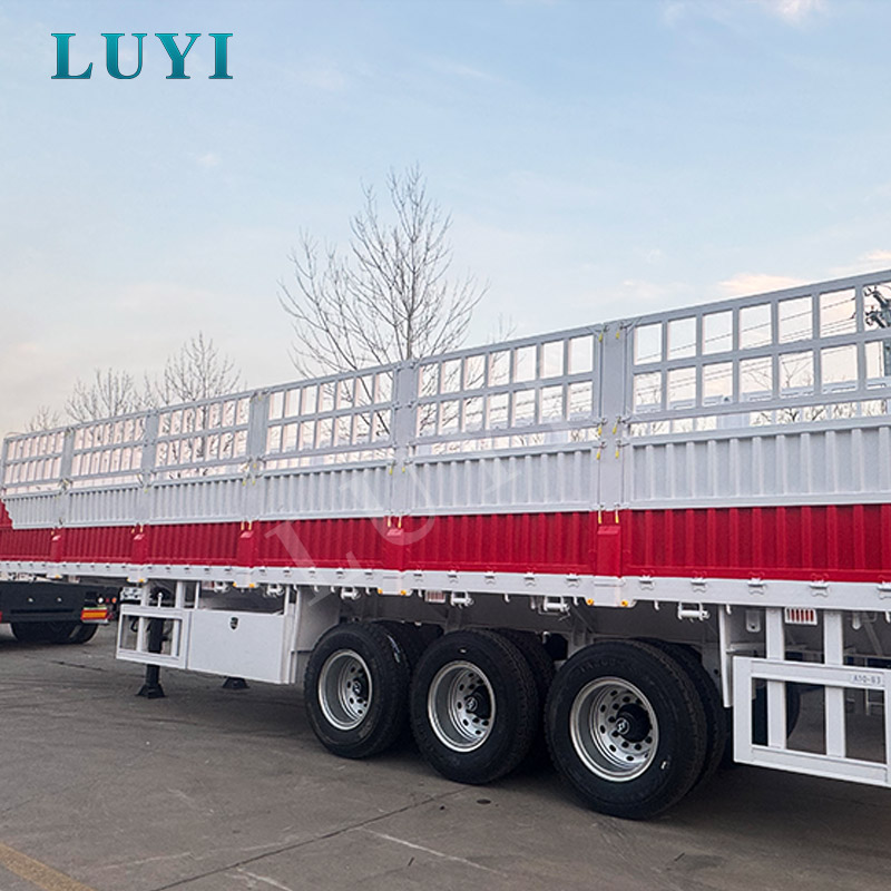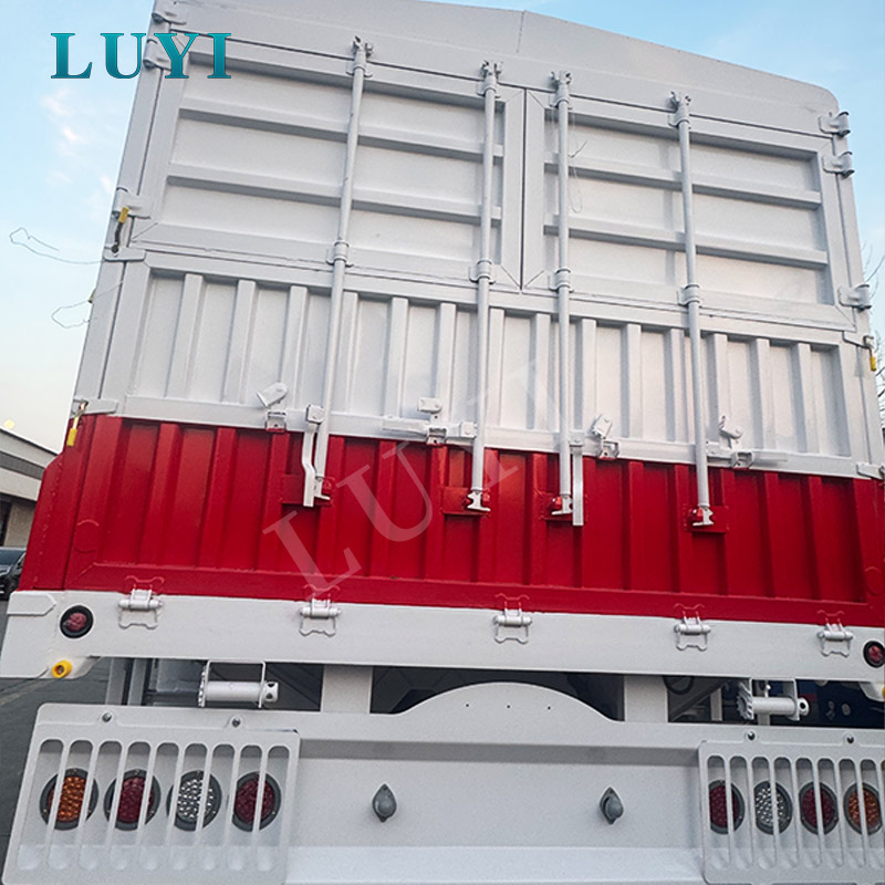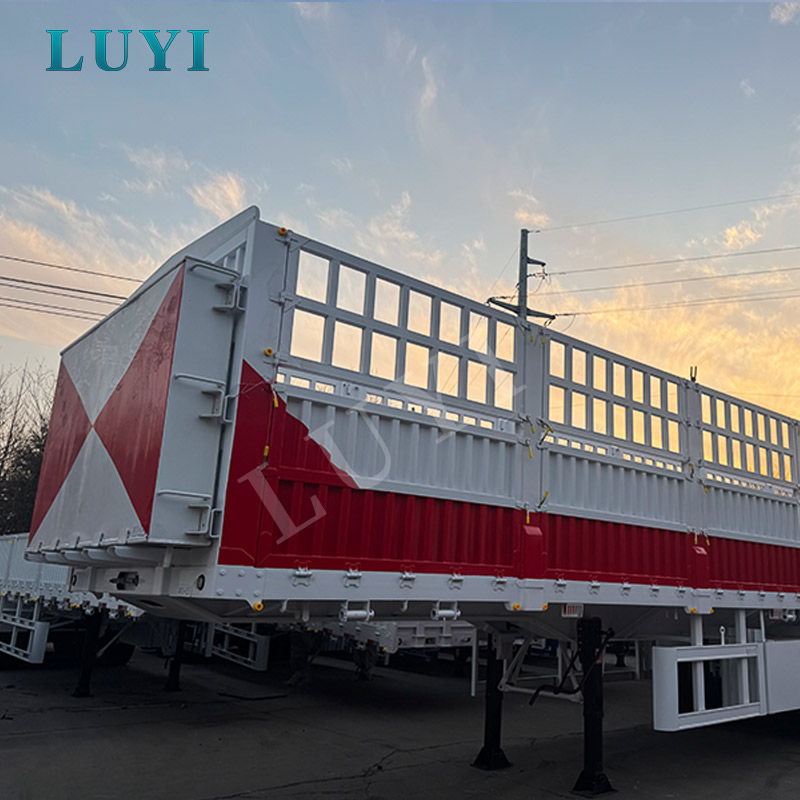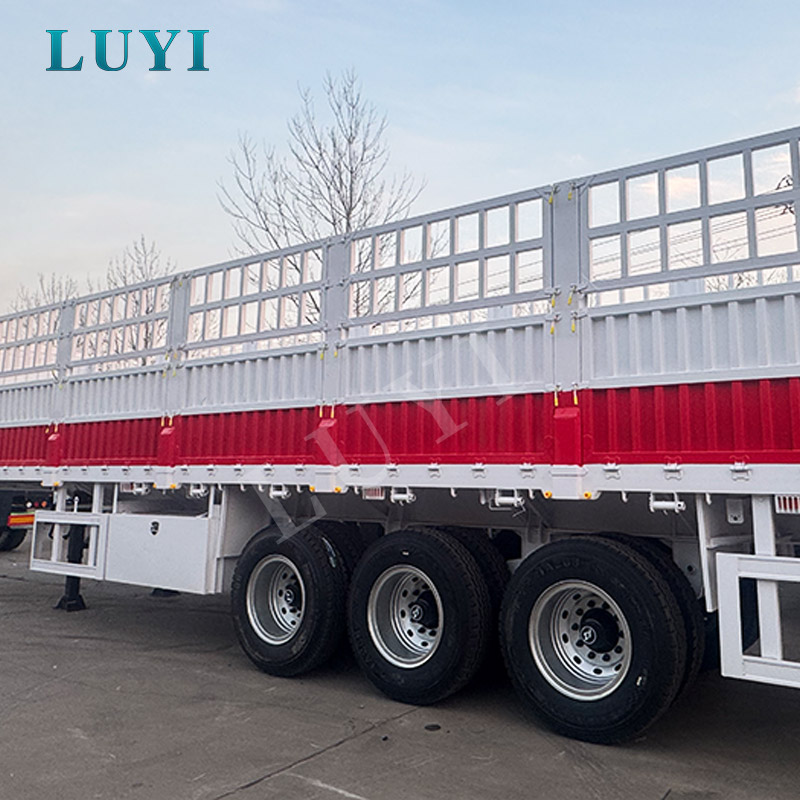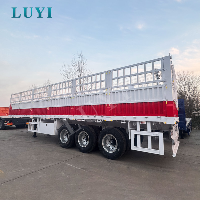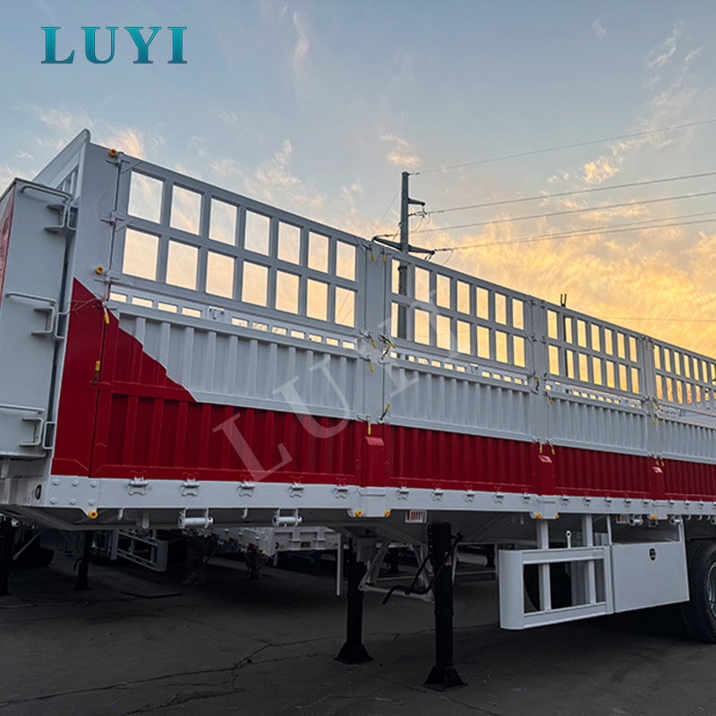 LUYI 3-akslet sidevægs-sættevogn er en tung transportarbejdshest bygget til bulklastbehov, tilgængelig i 50T, 60T og 80T lastkapacitet. Den måler 1550025504000 mm, den har en robust stålkrop og kommer med to affjedringsmuligheder: mekanisk affjedring for omkostningseffektiv holdbarhed og luftaffjedring for jævnere ture på barske veje. Udstyret med 12 stk 12r22.5 dæk og top-tier aksler fra Feichi, BPW eller Fuwa, sikrer den stabil ydeevne selv under maksimal belastning.