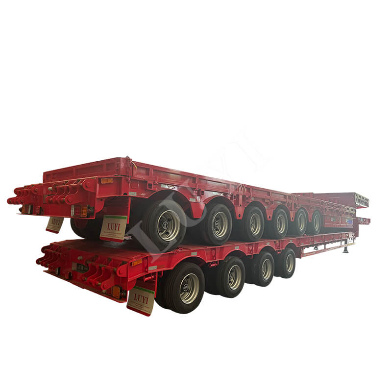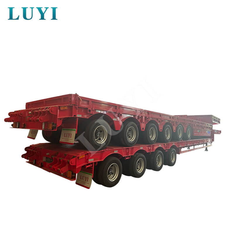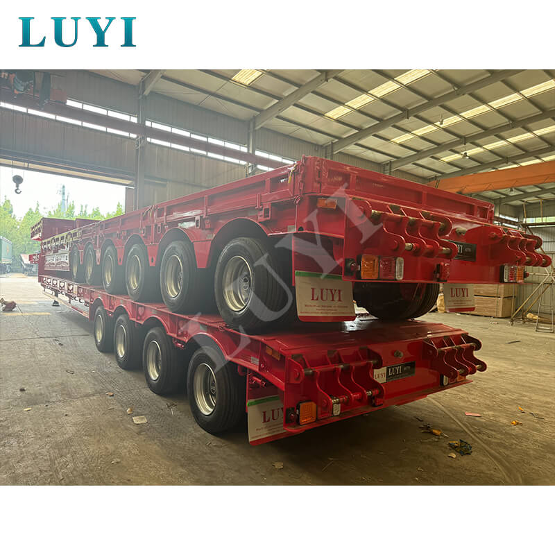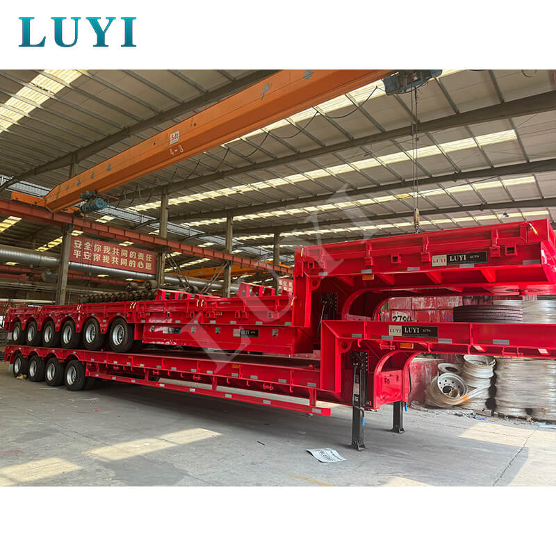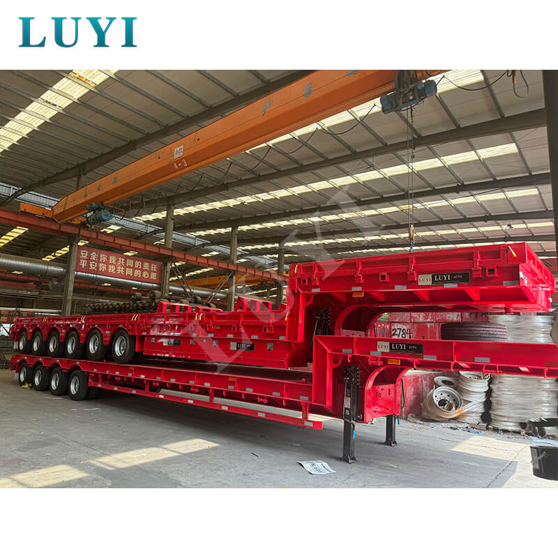 Luyi 6-akslet 80-100 tons tilbagetrækkelig stålcontainer Lowboy Semi-Trailer, der stammer fra Shandong-provinsen, Kina, er en højeffektiv lastbiltrailer designet specielt til containertransport. Den er konstrueret med stål af høj kvalitet, måler 1300025001350 mm og tilbyder valgfri akselkonfigurationer på 3/4/5/6 aksler, udstyret med det kendte FUWA-mærkeaksler. Dens maksimale effektive nyttelast varierer fra 20001 til 25000 kg.