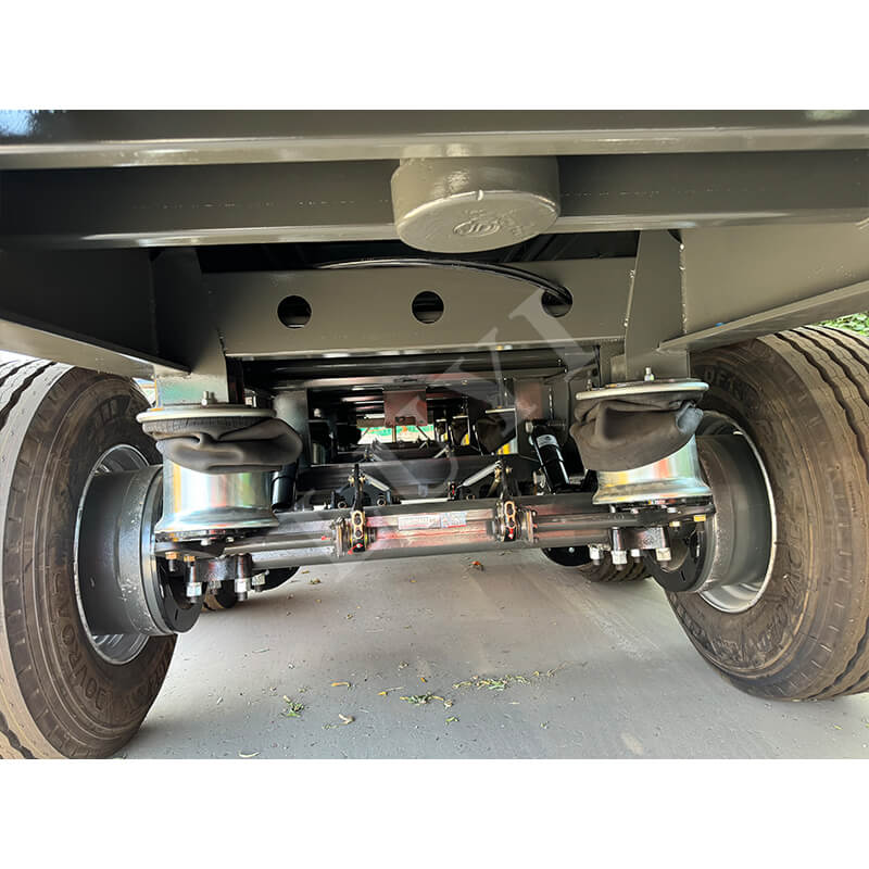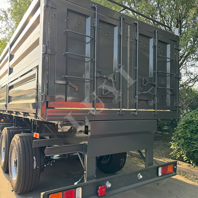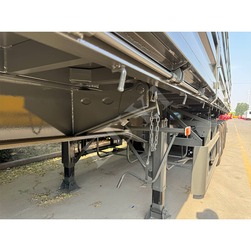 LUYI 60-tons klasse 4-akslet side-tipper sættevogn er skræddersyet til tung bulklasttransport i scenarier som miner og infrastrukturprojekter. Den anvender en hydraulisk aflæsningsstruktur med sidetip, hvilket muliggør hurtig aflæsning i snævre rum og fuldstændig tømning af rummene inden for få minutter, hvilket i høj grad forbedrer fragtomsætningseffektiviteten. Kernelastbærende komponenter er lavet af højstyrke holdbart stål, parret med et 4-akslet design og luftaffjedrede airbags. Dette fordeler ikke kun trykket fra 60 tons tunge laster og opfylder lovmæssige krav, men justerer også stødabsorberingshårdheden efter lasten, hvilket reducerer laststød og vejpåvirkning. Hele køretøjet balancerer effektiv aflæsning, holdbarhed ved tung last og kørestabilitet, hvilket gør det til et pålideligt valg til tung bulkgodstransport.