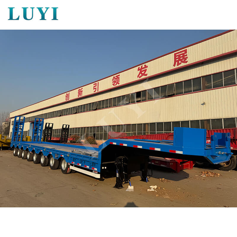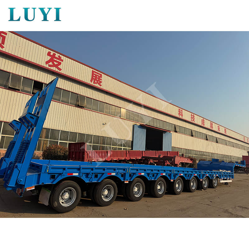 LUYI 8-akslet 150-tons Heavy-Duty Low-Bed Semi-Trailer, der stammer fra Shandong-provinsen, Kina, er en professionel lastbiltrailer designet specielt til ultra-tung lasttransport.
