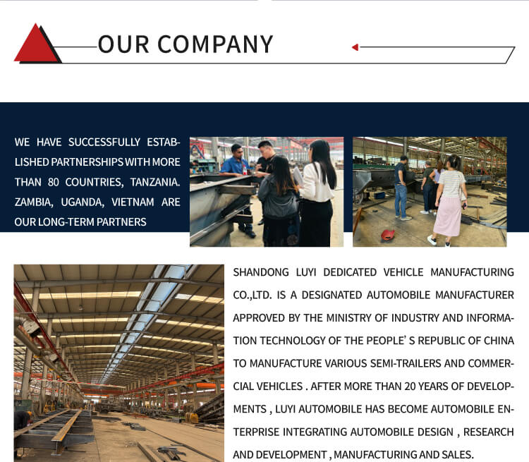 Vores fabrik producerer ikke kun traktorer, men også dumpere, sprinklervogne, lastbilkraner, blandevogne, dumpertrailere tanktrailere, lavtliggende trailere, støvfjernelsestrailere osv. Vores fabrik er stor i skala og kan tilpasse forskellige produkter efter forskellige kundekrav.