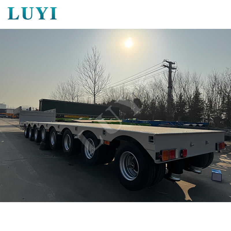 LUYI 8-akslet 17m 80-tons forlængelig luftaffjedret lavsengs-sættevogn, en højtydende sættevogn fra Shandong, Kina, er dedikeret til transport af tungt udstyr. Den anvender kulstofstål eller aluminium som materialer, med et design, der kan udvides, så det passer til forskellige lastlængder, og en maksimal nyttelast på 80 tons for at imødekomme krav til tung last.