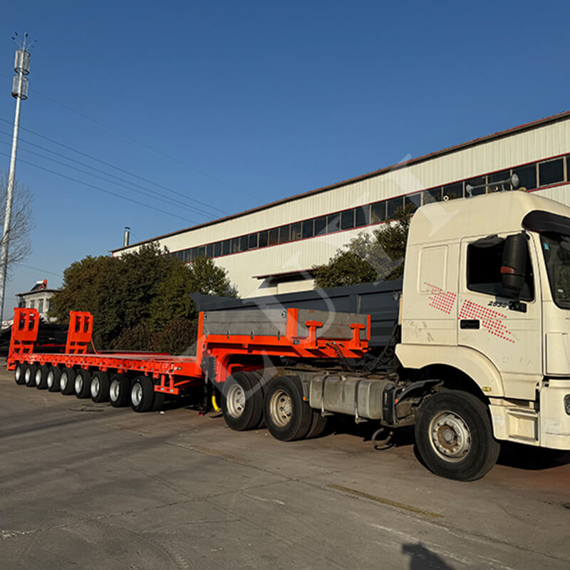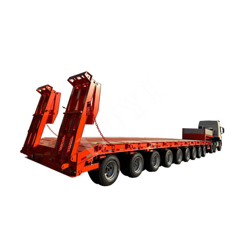 Traileren er udstyret med 12R22.5 dæk og matchet med bladfjedre i specifikationer på 90mm13mm10 eller 90mm16mm10, hvilket sikrer transportstabilitet og holdbarhed. Stigen fås i mekaniske eller hydrauliske udgaver for bekvem og effektiv lastning/aflæsning. Kan tilpasses kropsfarver imødekommer personlige behov, og den leveres også med en 6-års garanti, der giver pålidelig sikkerhed for osers. Den er velegnet til langdistancetransport af forskelligt tungt udstyr og bulklast.