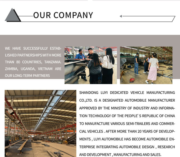 Vores fabrik producerer ikke kun traktorer, men også dumpere, sprinklervogne, lastbilkraner, blandevogne, dumpertrailere, tanktrailere, trailere med lavt leje, trailere til fjernelse af støv osv. Vores fabrik er stor i skala og kan tilpasse forskellige produkter efter forskellige kundekrav.
