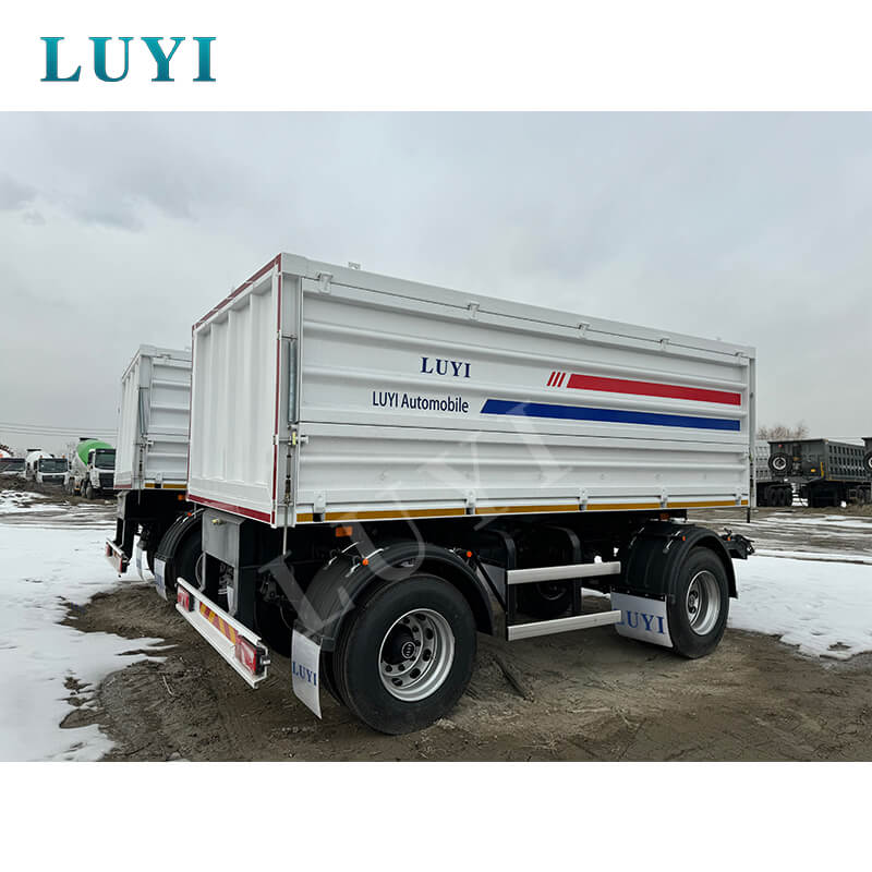 Luyi Full Drawbar Cargo Box Dump Semi-Trailer, der stammer fra Shandong-provinsen, Kina, er en højkvalitets lastvogns-sættevogn specielt designet til sand-, grus- og kultransport. Trailerkassen er lavet af højkvalitetsstål, med dimensioner på 10000×2500×3600 mm. Den har en robust og holdbar struktur, og dens maksimale effektive nyttelast kan nå op på 50 tons, hvilket muliggør effektiv lastning af bulkgods.