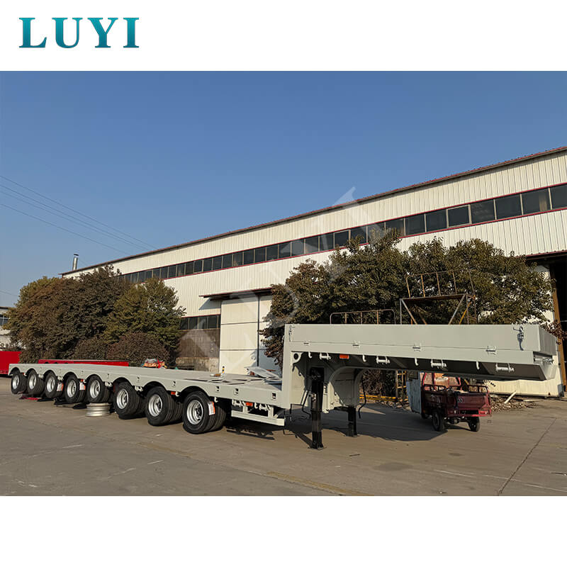 Med oprindelse i Shandong, Kina, er LUYI 8-akslede 17 m tunge lav-seng sættevogn et højtydende udstyr skræddersyet til transport af tung last. Med en lastkapacitet på 80 tons og en maksimal nyttelast på over 30.000 kg håndterer den ubesværet store tekniske maskiner og tunge komponenter. Med dimensioner på 16900*3000*1800 mm tilpasser lav-sengs-designet sig til overhøjde laster og undgår effektivt transporthøjdebegrænsninger.