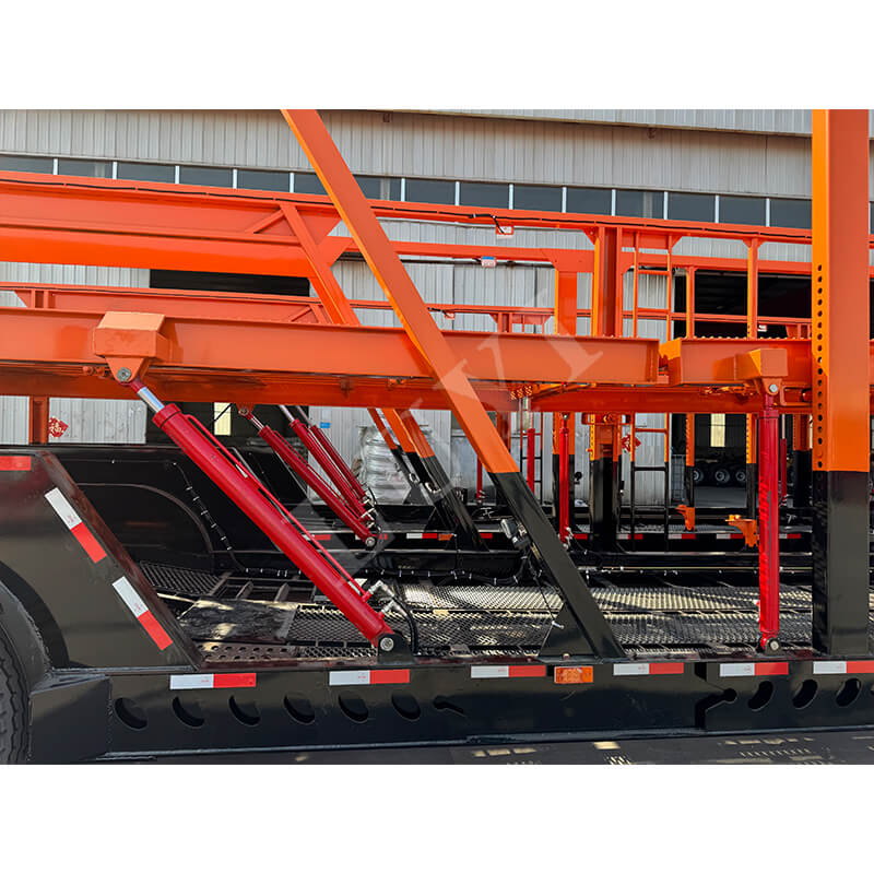 2-akslet 8-parkeringsplads køretøjstransport sættevogn. Kroppen er lavet af højstyrkestål, med en stabil bærende struktur, og er udstyret med et hydraulisk løftesystem, som fleksibelt kan justere højden på parkeringspladserne, velegnet til læsning af forskellige modeller. Den kan effektivt transportere 8 køretøjer ad gangen, hvilket hjælper billogistikindustrien med at forbedre transporteffektiviteten.