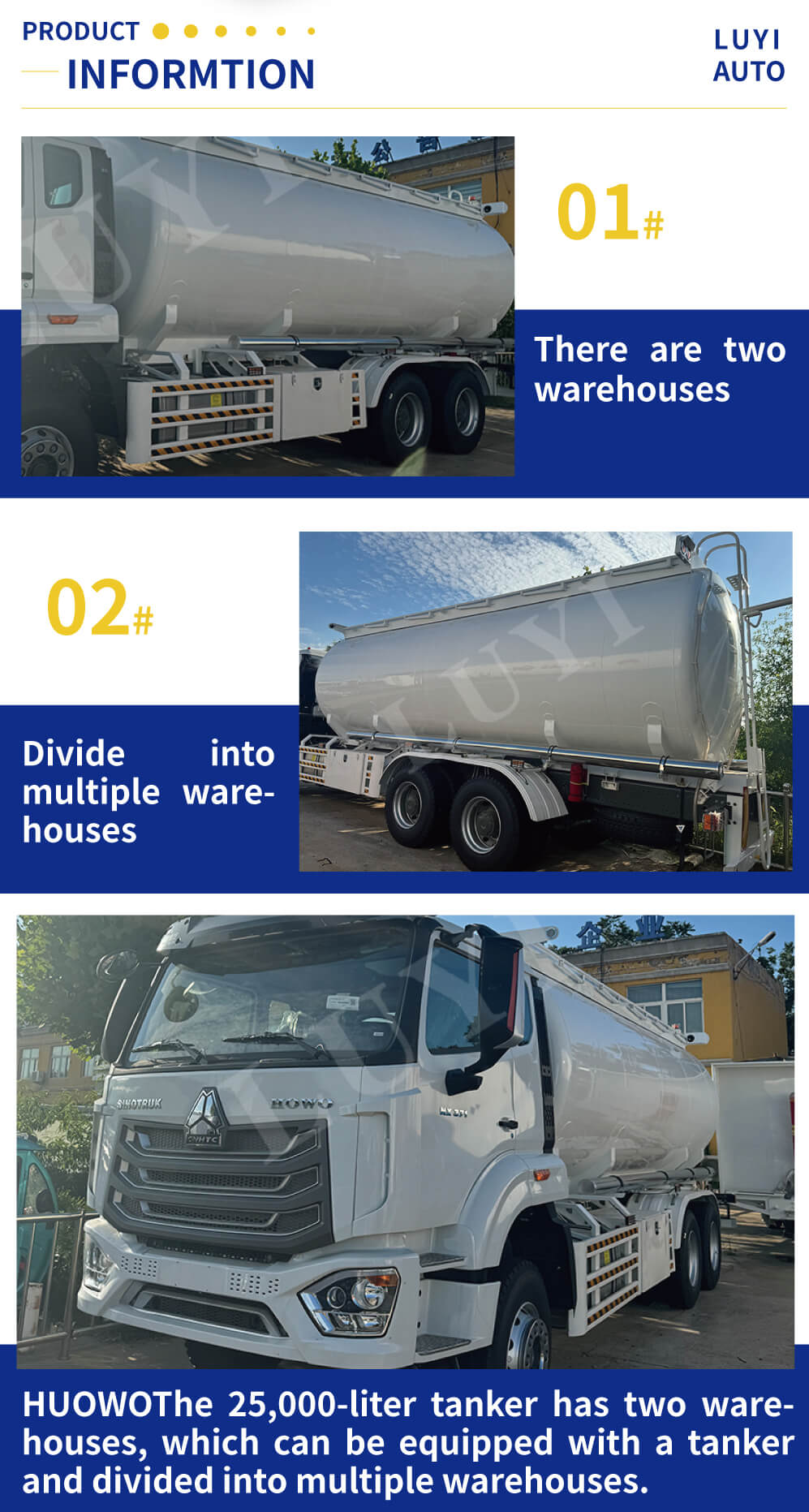 Denne olietank sættevogn er fra Shandong, Kina, og tilhører Sinotruk Howo NX-mærket. Den er specielt designet til olietransport. Køretøjet har en 6×4-drevkonfiguration med en totalvægt på ≥30 tons og en lastbærende kapacitet på 31-40 tons. Tankvolumen er på 25.000 liter, hvilket effektivt kan imødekomme behovene for storskala olietransport.