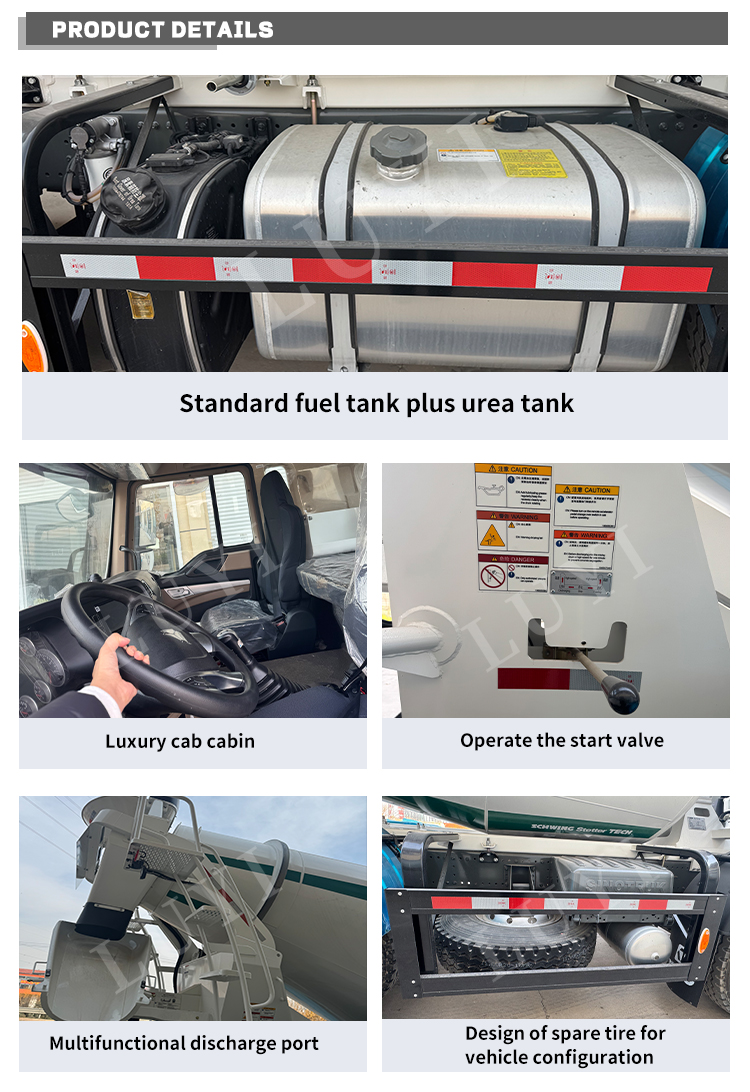 LUYI (Luyi) Howo G480 12 kubikmeter lastbilmonteret cementblander, der stammer fra kerneproduktionsbasen i Shandong, Kina, er et effektivt blandeudstyr specielt bygget til oversøisk ingeniørkonstruktion. Produktet er udstyret med kernekomponenter af høj kvalitet, der opfylder CE/ISO9001-certificeringsstandarder, herunder nøglekomponenter såsom trykbeholdere, motorer, gearkasser og PLC-kontrolsystemer, hvilket sikrer stabilt output af udstyret inden for en arbejdscyklus på 0-2000 timer.