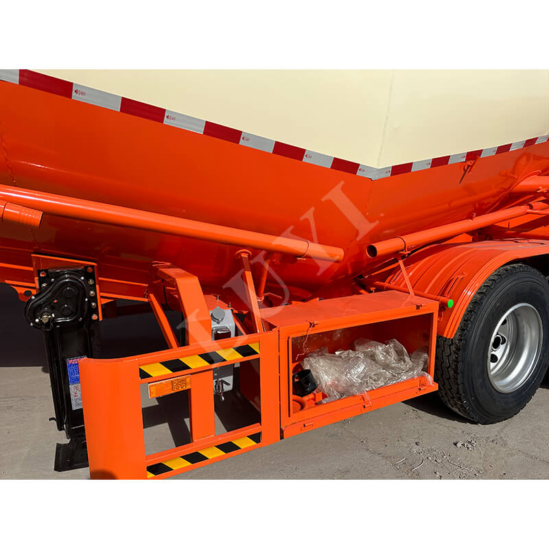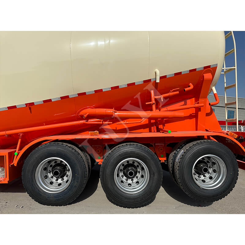 Trailerens mål er 10500×2550×4000 mm. Den er udstyret med to muligheder for mekanisk/luftaffjedring, parret med en 3-akslet stabil struktur og 28-tons kraftige støtteben for at sikre stabilitet under parkering og kørsel. Dual-line bremsesystemet øger sikkerheden. Dækmuligheder omfatter forskellige specifikationer såsom 11.00r20 og 12r22.5, og kingpin fås i to modeller: JOST 50 mm / 90 mm. Derudover kan farven tilpasses efter behov, fuldt ud tilpasset til forskellige transportscenarier og æstetiske krav, hvilket gør det til et pålideligt udstyr til bulkcementtransport.