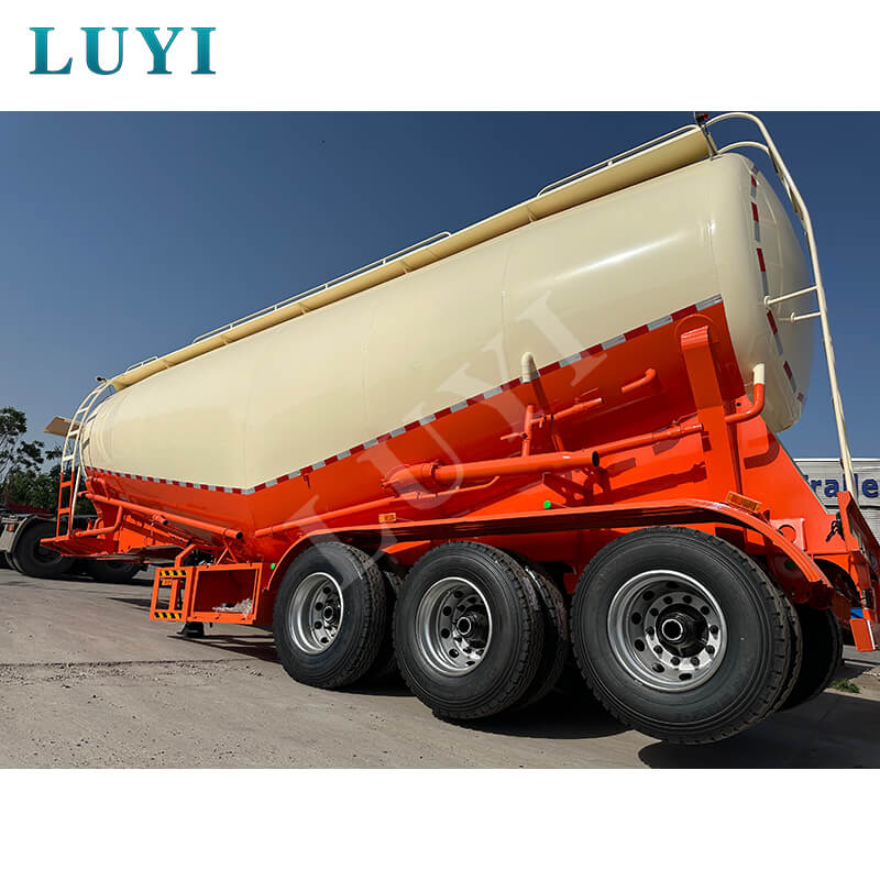 Den 3-akslede 40 kubik-meter V-type bulkcementtanksættevogn fra LUYI, Shandong-provinsen, Kina, er lavet af højkvalitetsstål og er i en helt ny stand. Den er specielt designet til transport af bulkcementpulver med en maksimal effektiv belastning på over 30.000 kg og kan prale af en stærk bæreevne.
