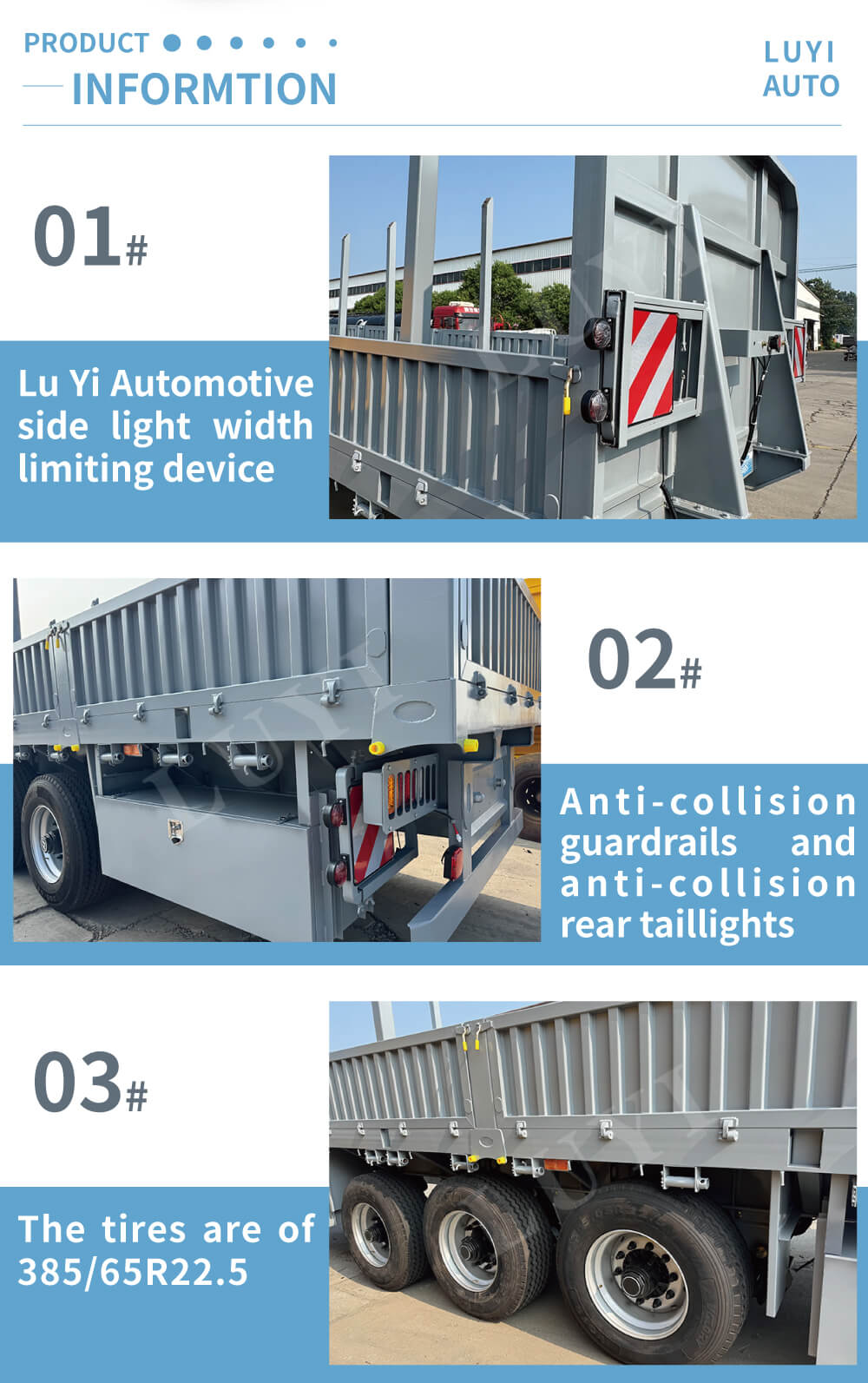 Den 3-akslede sidevægs-sættevogn med søjler fra LUYI, et mærke baseret i Shandong, Kina, er et optimalt valg til bulklast og containertransport. Den er konstrueret af højkvalitetsstål og har præcise dimensioner på 12500x2500x1600 mm og en maksimal nyttelastkapacitet på 60 tons, hvis kraftige bæreevne nemt kan opfylde forskellige tunge transportbehov.