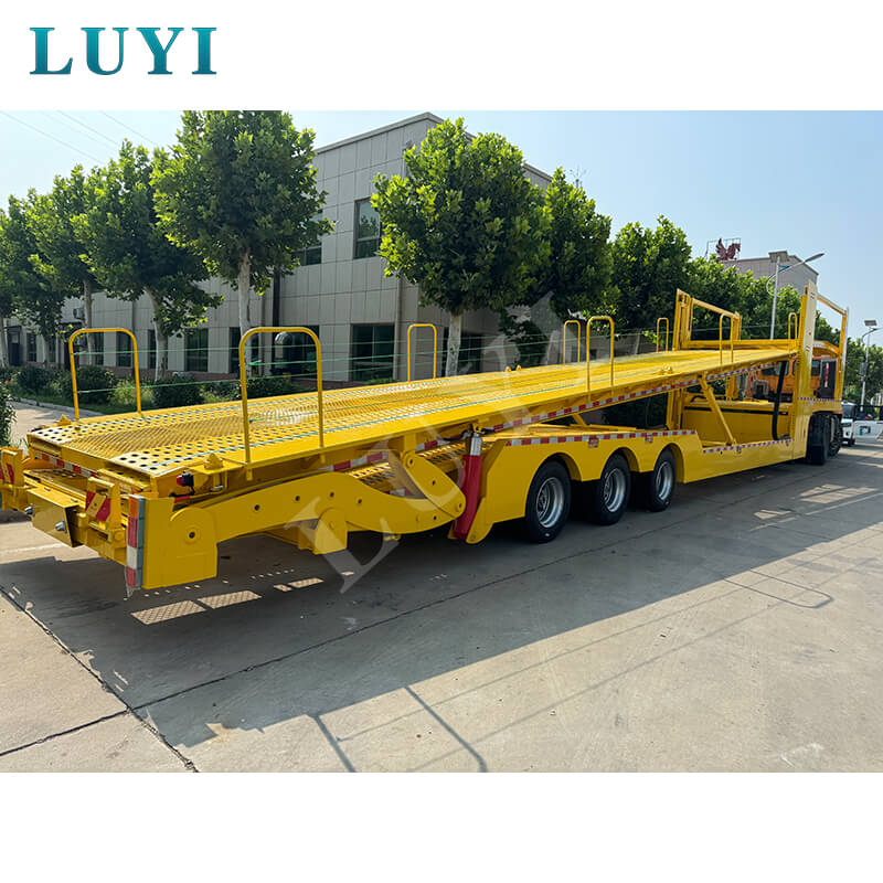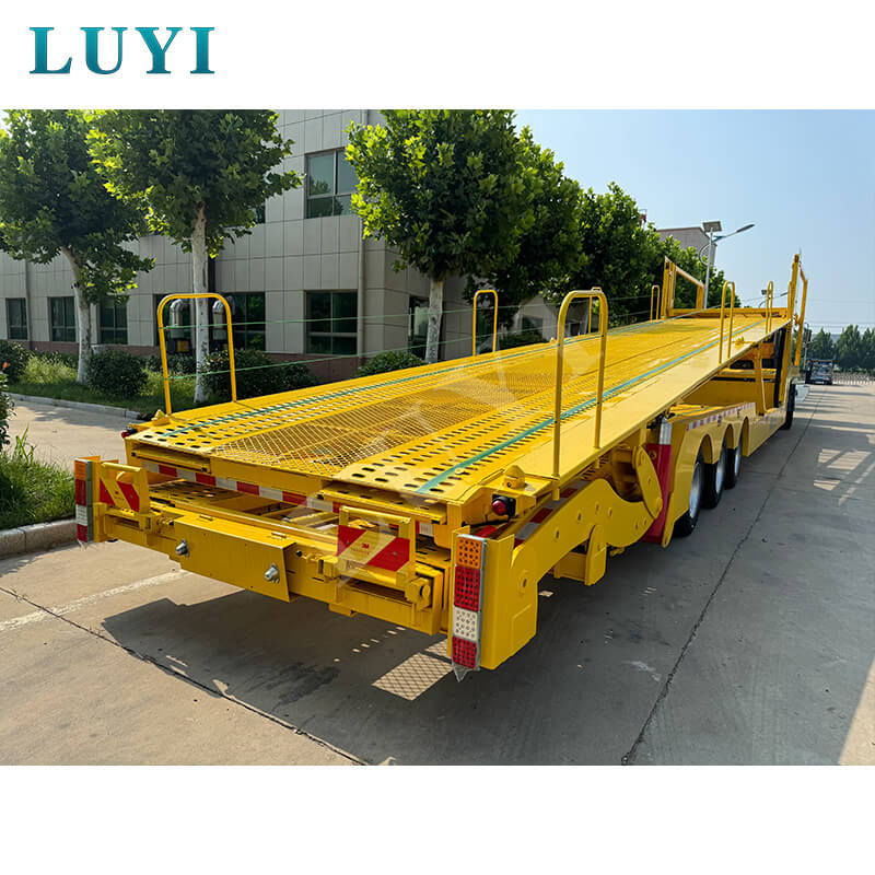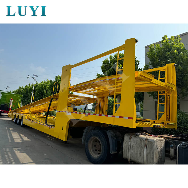 LUYI 40 fod 4-akslet lukket dobbeltdækker sættevognsvogn af Shandong Luyi Special Vehicle Manufacturing Co., Ltd. er udviklet til levering af nye biler, brugtbilstransport og andre scenarier. Med en belastningskapacitet på 40-60 tons med sin 4-akslede struktur beskytter det fuldt lukkede karrosseri køretøjer mod ydre skader. Dobbeltdækker-stablingsplatformen øger læssekapaciteten til 6-8 enheder, mens vippesengen forenkler på- og aflæsning for modeller med lavt chassis. Den er lavet af stål og tilbyder høj styrke, slidstyrke og omkostningseffektivitet, ideel til højfrekvent, tung kommerciel transport.