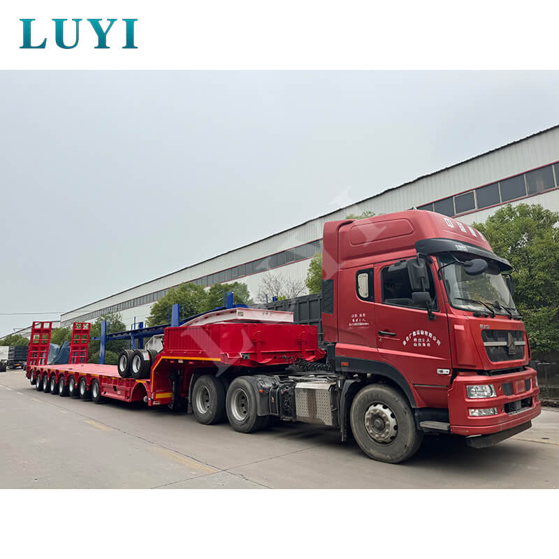 Den 8-akslede 17 m udtrækkelige svanehals-sænkevogn fra LUYI, der stammer fra Shandong, Kina, er en højtydende sættevogn, der er specielt designet til transport af tungt udstyr.