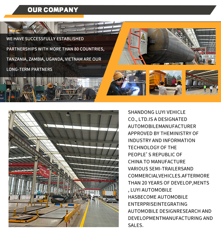 Den LUYI femakslede sættevogn med bagerste tip kommer fra Shandong i Kina og skiller sig ud som en robust løsning til krævende scenarier med tung belastning. Uanset om det transporterer byggeaggregater, mineralmalm eller industrielle materialer i bulk, leverer den kompromisløs ydeevne på barske byggepladser, fjerntliggende mineområder og langdistancelogistikruter.