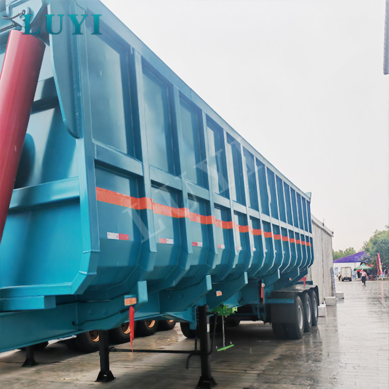 LUYI-mærket 3-akslet sidetip-dumper-sættevogn, der stammer fra højkvalitetsproduktion i Shandong, Kina, er et effektivt lastbærende udstyr, der er specielt designet til bulklasttransport. Produktet er lavet af højstyrkestål, der kombinerer holdbarhed og bærende stabilitet. Dens nominelle last varierer fra 50 til 60 tons, med en maksimal effektiv nyttelast på op til 60 tons, hvilket fuldt ud opfylder langdistancetransportbehovet for forskellige bulklaster.
